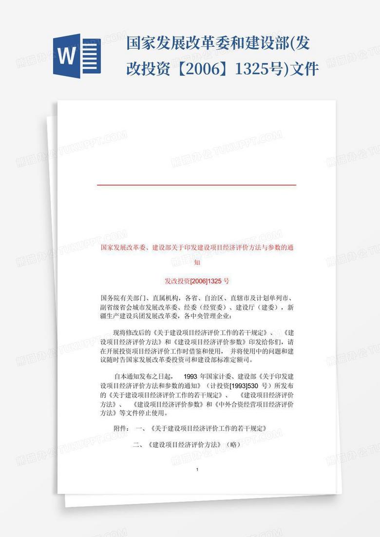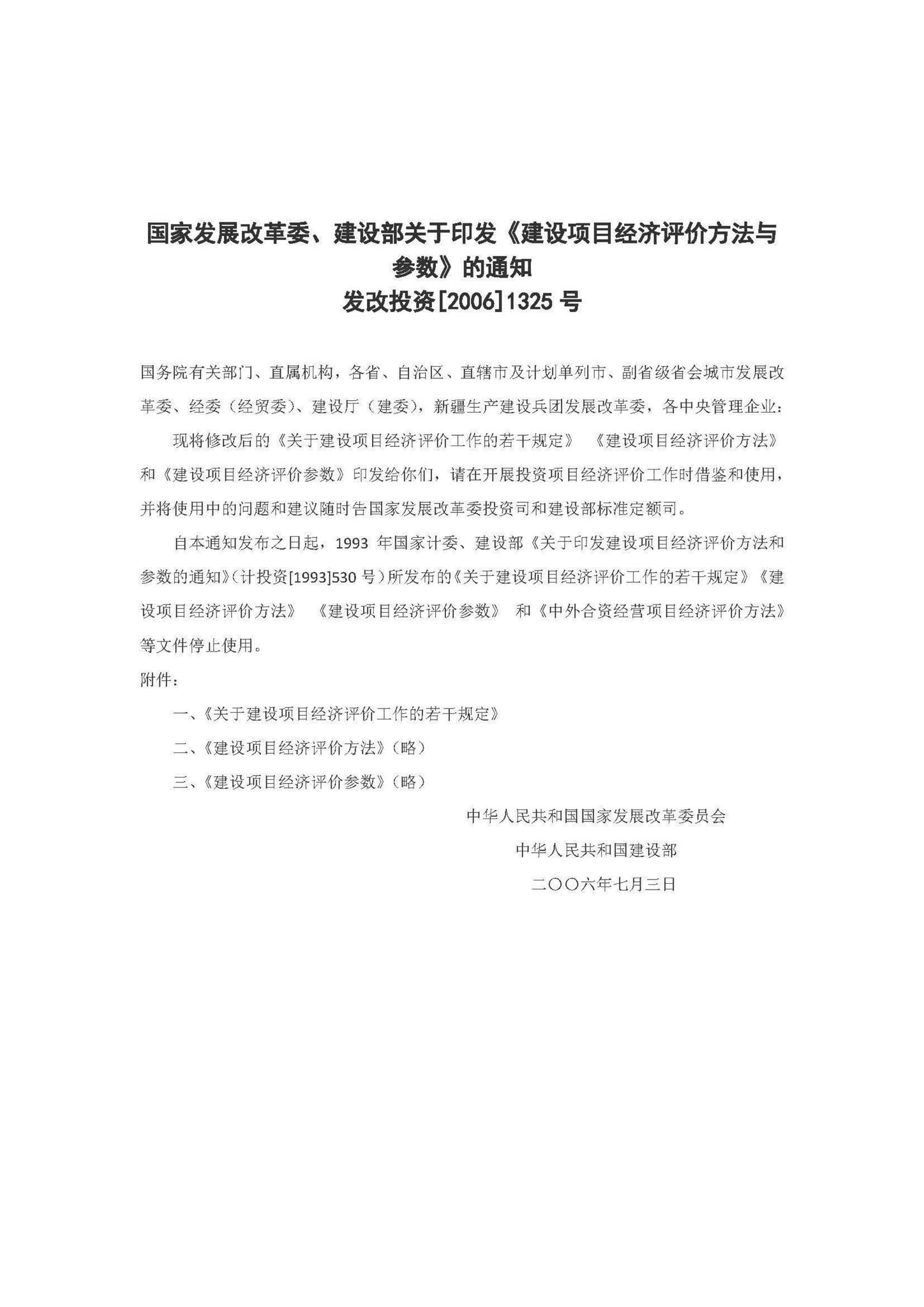 阅读-发改投资[2006]1325号:国家发展改革委、建设部关于印发《建设项目经济评价方法与参数》的通知