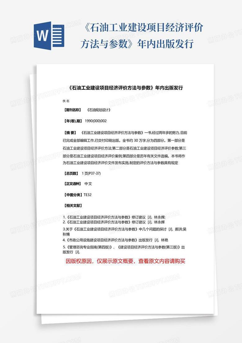 《石油工业建设项目经济评价方法与参数》年内出版发行Word模板下载_编号qbjxxrpa_熊猫办公