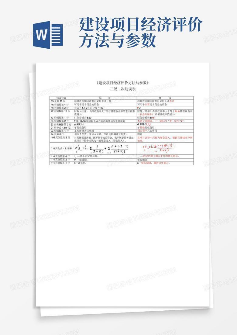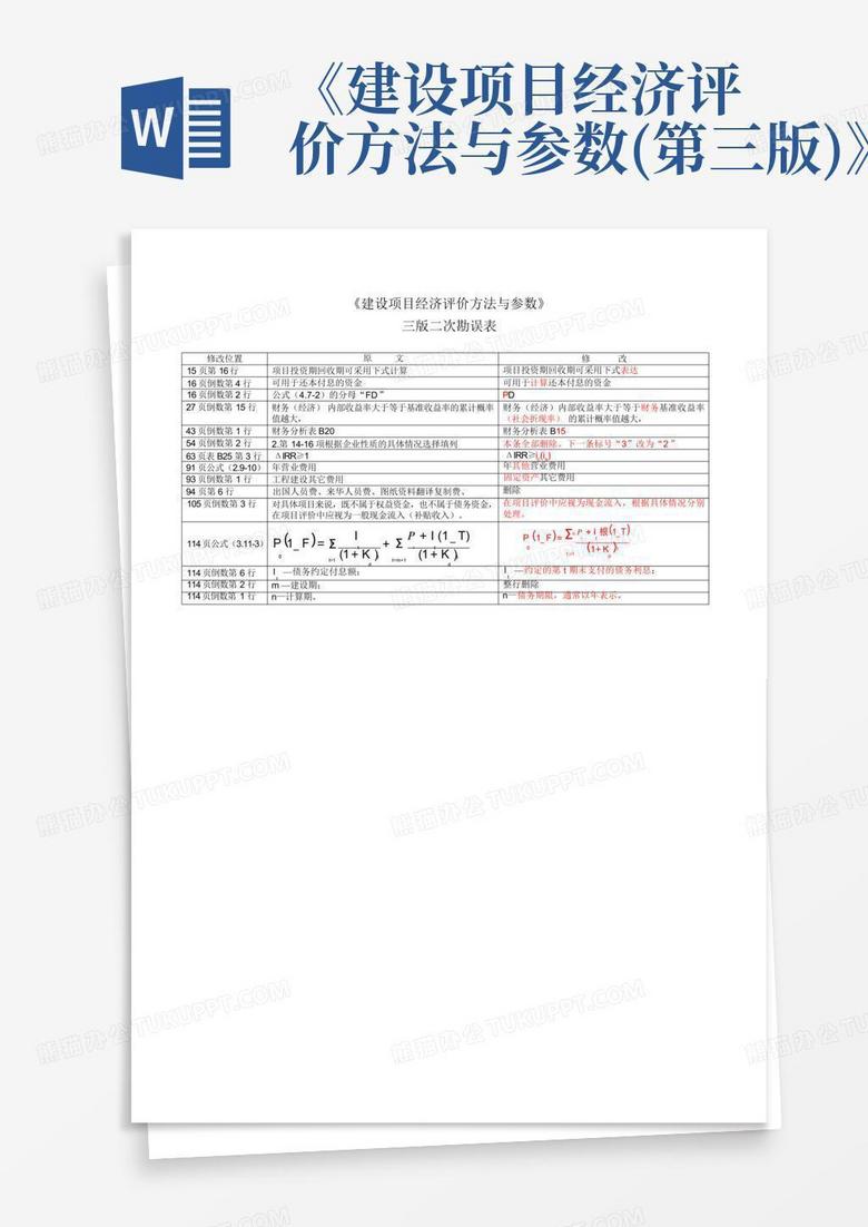 《建设项目经济评价方法与参数(第三版)》二次勘误表_word文档在线阅读与下载_无忧文档