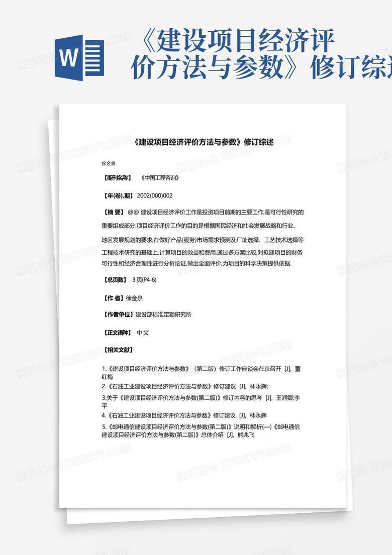 建设项目经济评价方法与参数Word模板下载_编号lwpnojzm_熊猫办公