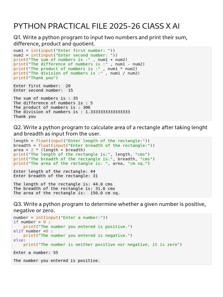 Practical File for Class IX (Term 1) - Python Programming Exercises ...