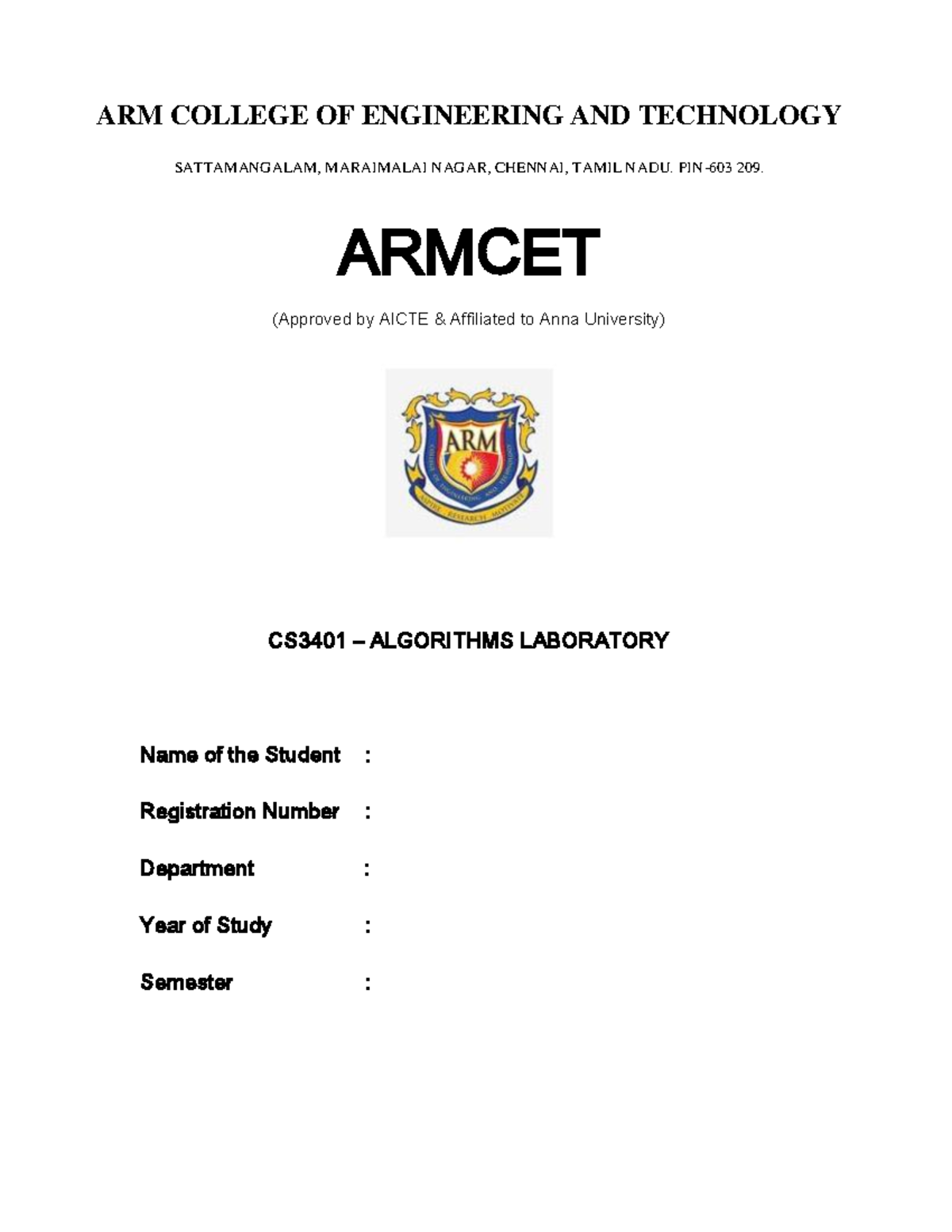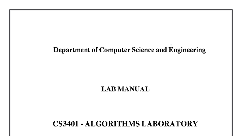 Based on this image's title: “CS3401 LTPC3024 Algorithms Laboratory Manual - Semester II - Studocu”