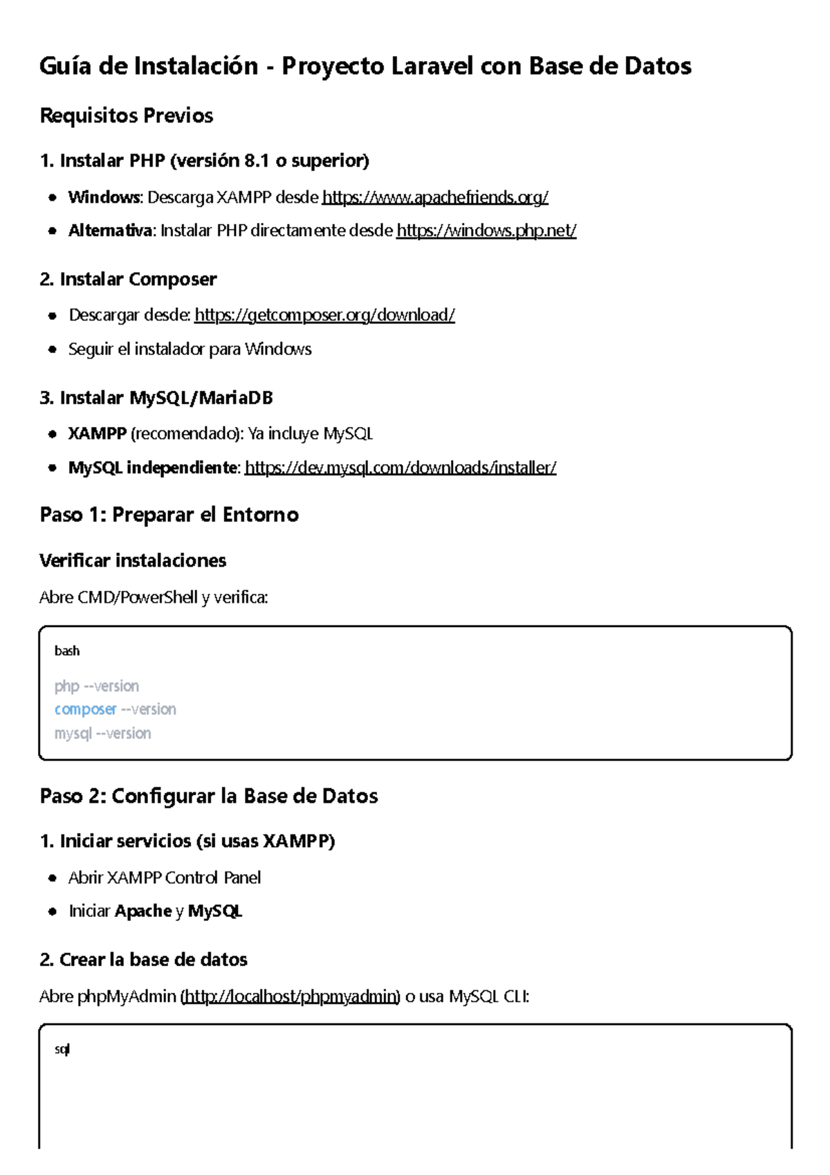 Guía de Instalación del Proyecto Laravel con Base de Datos - Studocu