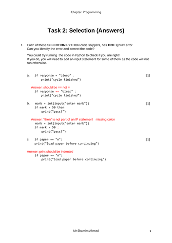 AS Computer Science - Unit 11 Programming - Python Lesson 3 | Teaching ...