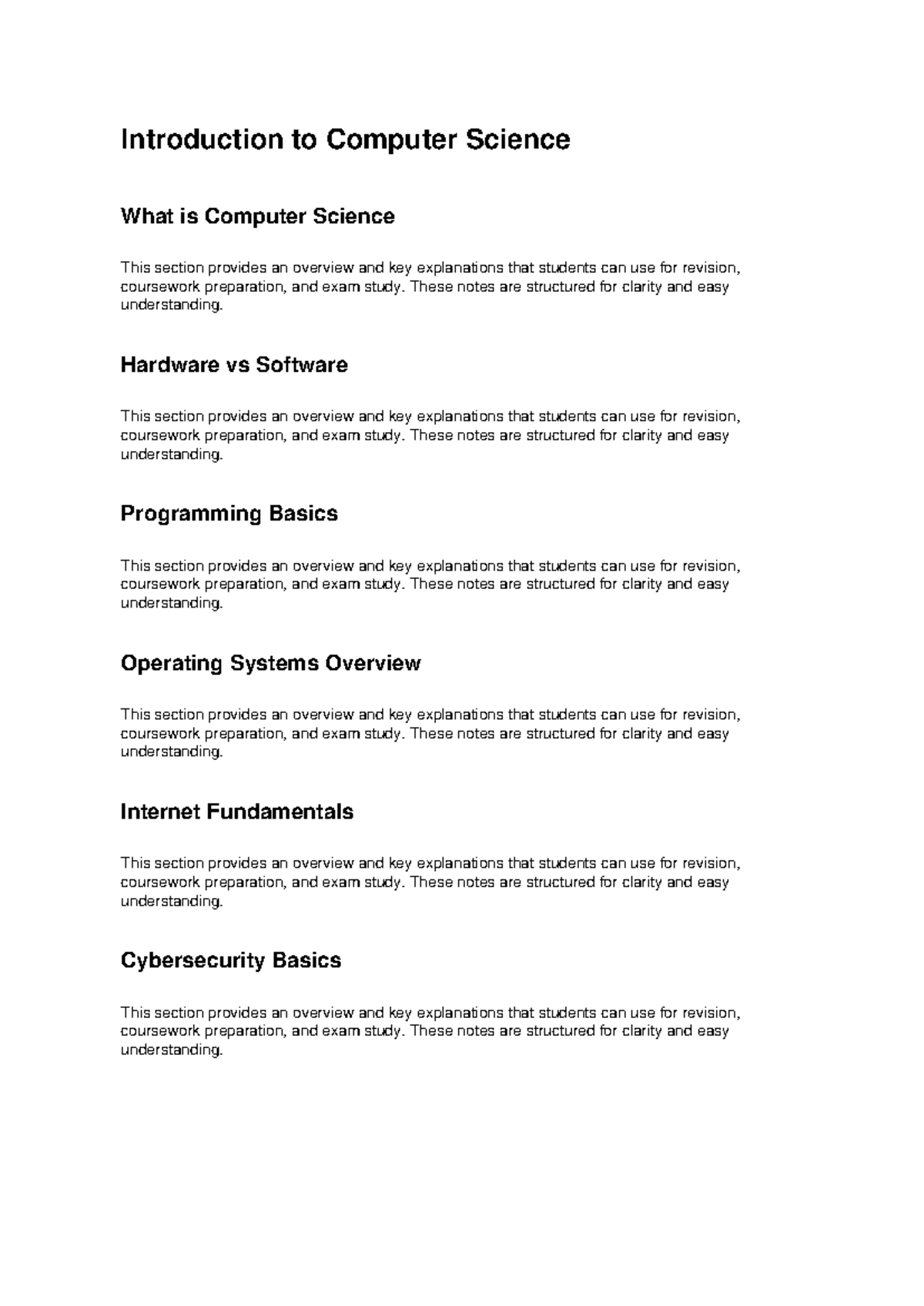 CS101: Intro to Computer Science - Key Concepts & Revision Notes - Studocu