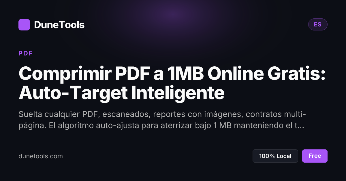 Comprimir PDF a 1MB Online Gratis (2026) | DuneTools