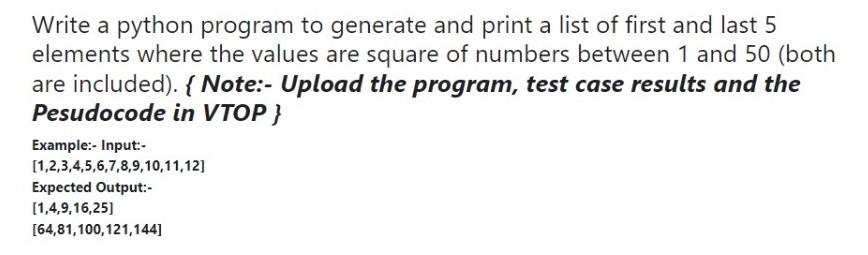 Solved Write a python program to generate and print a list | Chegg.com