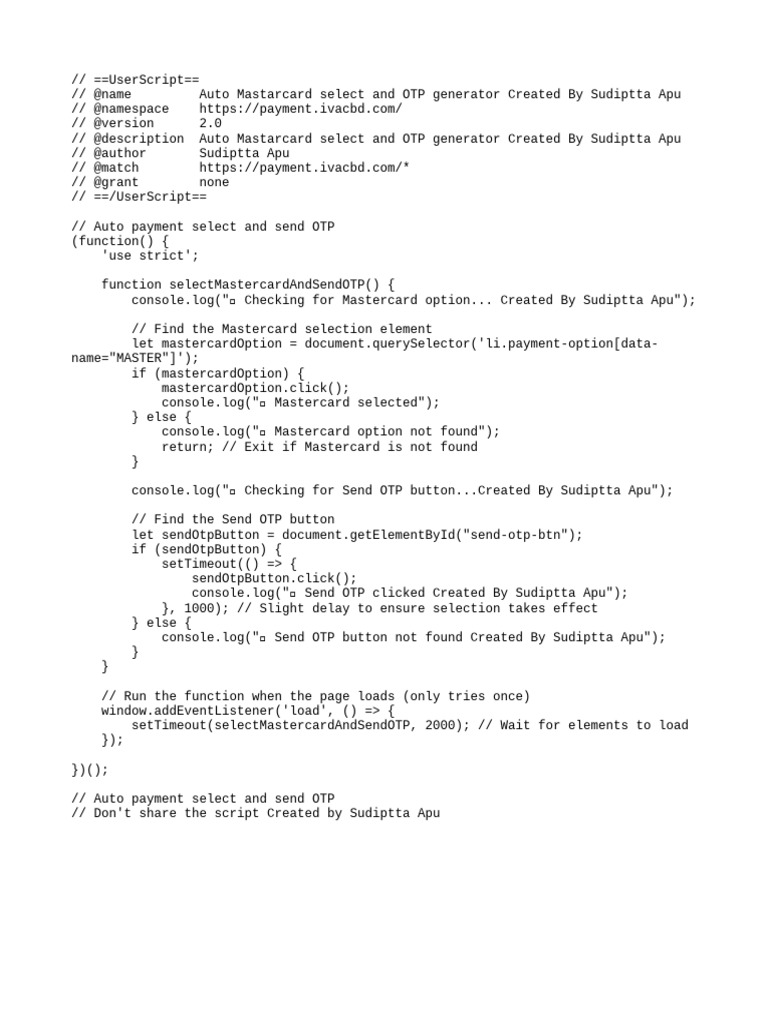 Auto OTP Genarate and Mastar Card Select. | PDF
