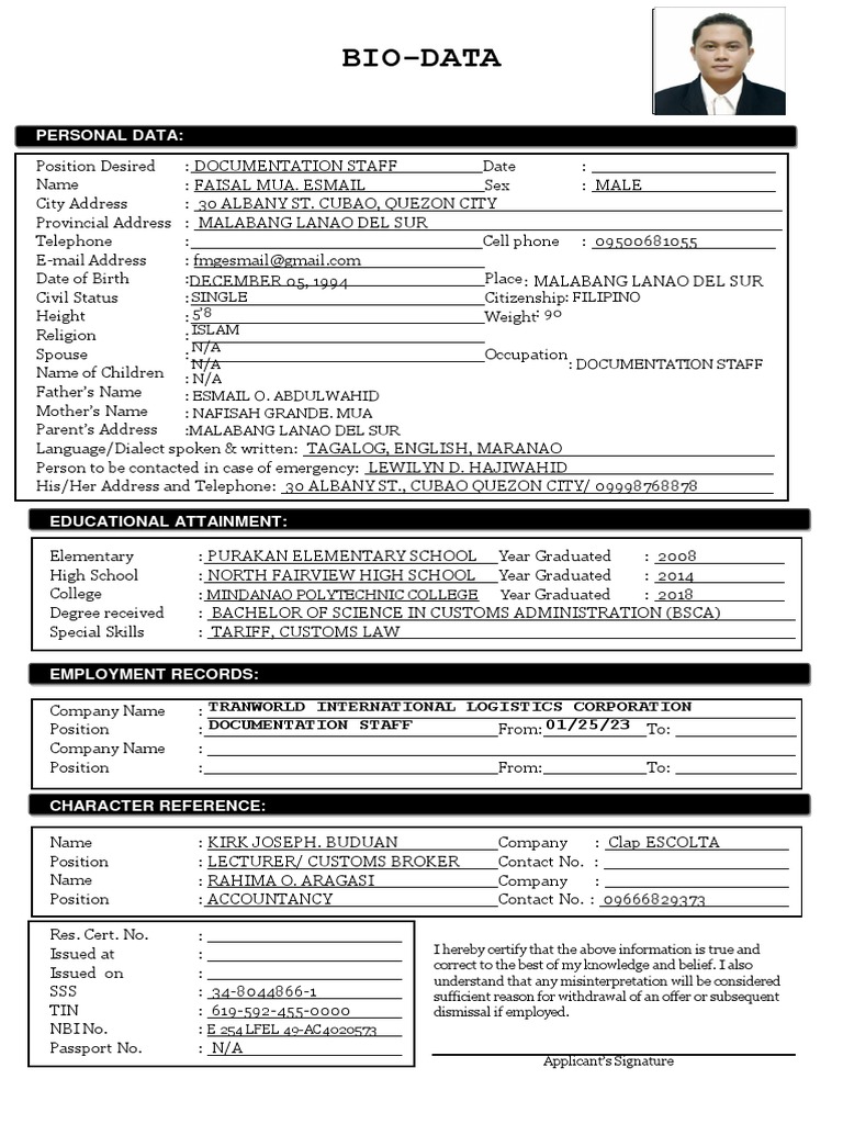 Biodata Template Philippines Word
