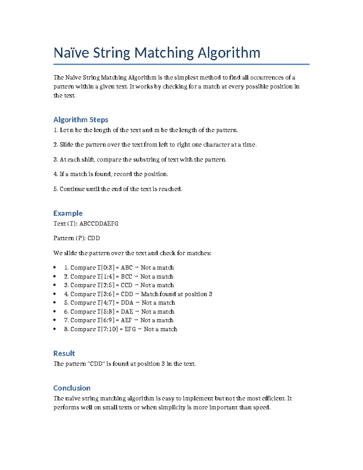 Naïve String Matching Algorithm - CS101 Lecture Notes - Studocu