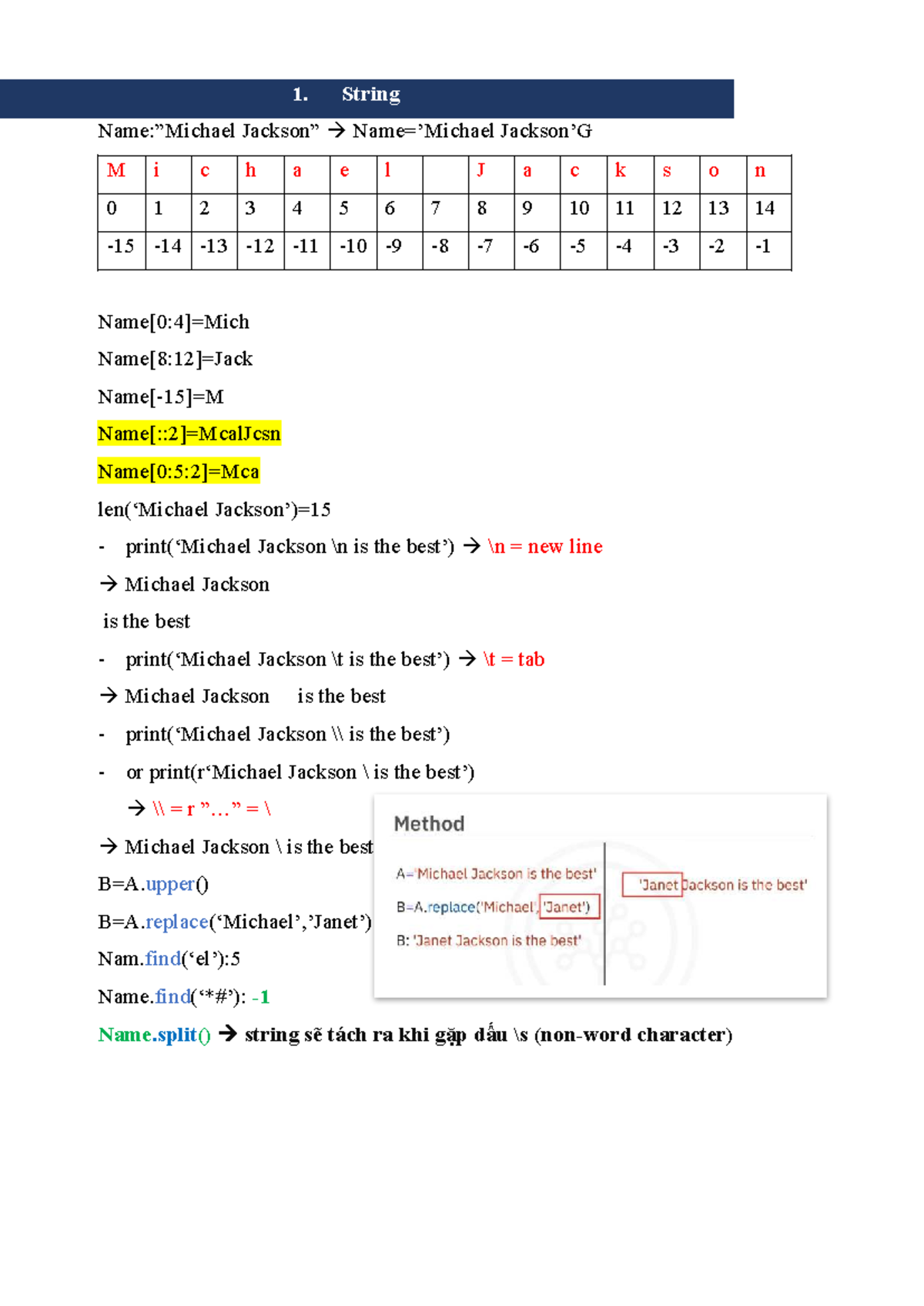 Python String short notes - Programming With Python -I - Studocu