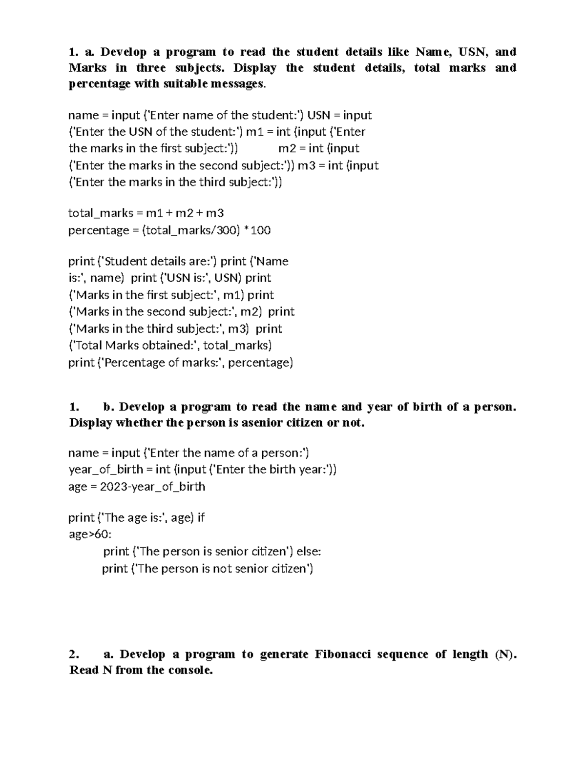 Important Python Programs for CS101: Student Details, Fibonacci, and ...