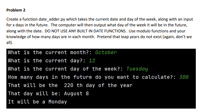 Solved Problem 2 Create a function date_adder.py which takes | Chegg.com