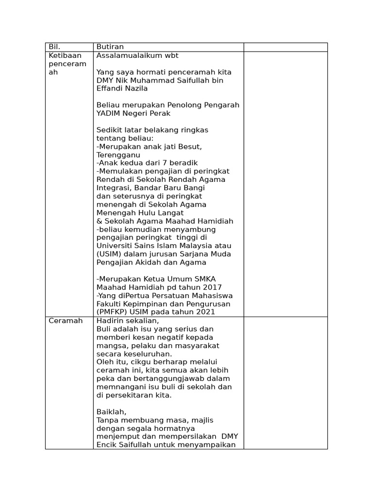 Teks Ceramah Buli Nik Muhammad Saifullah | PDF