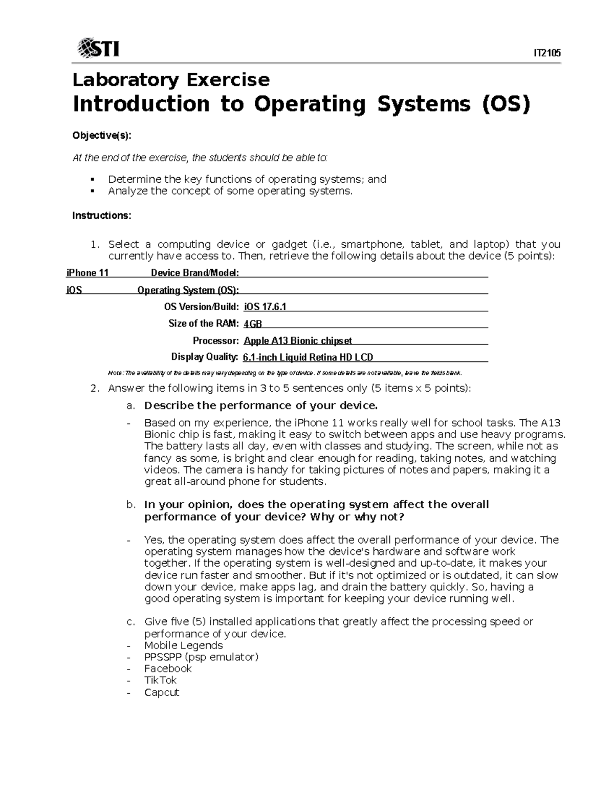 OS - Platform Technology - IT Laboratory Exercise Introduction to ...