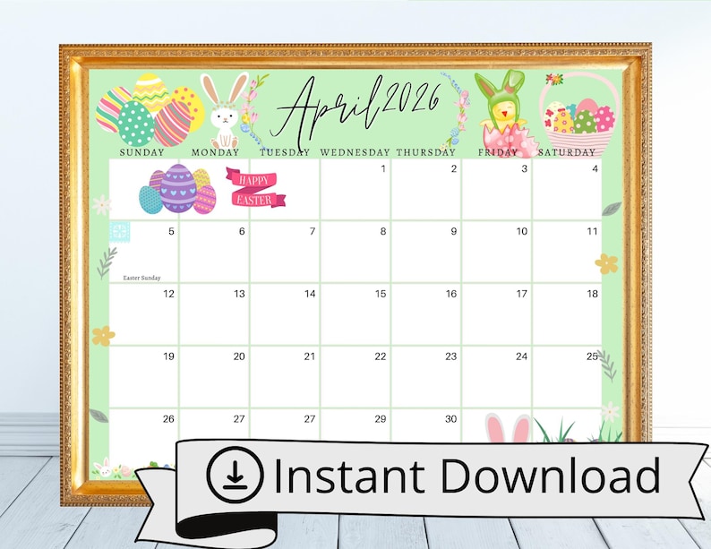 April 2026 Easter Sunday Calendar: Editable Printable (PDF, PNG, JPG ...