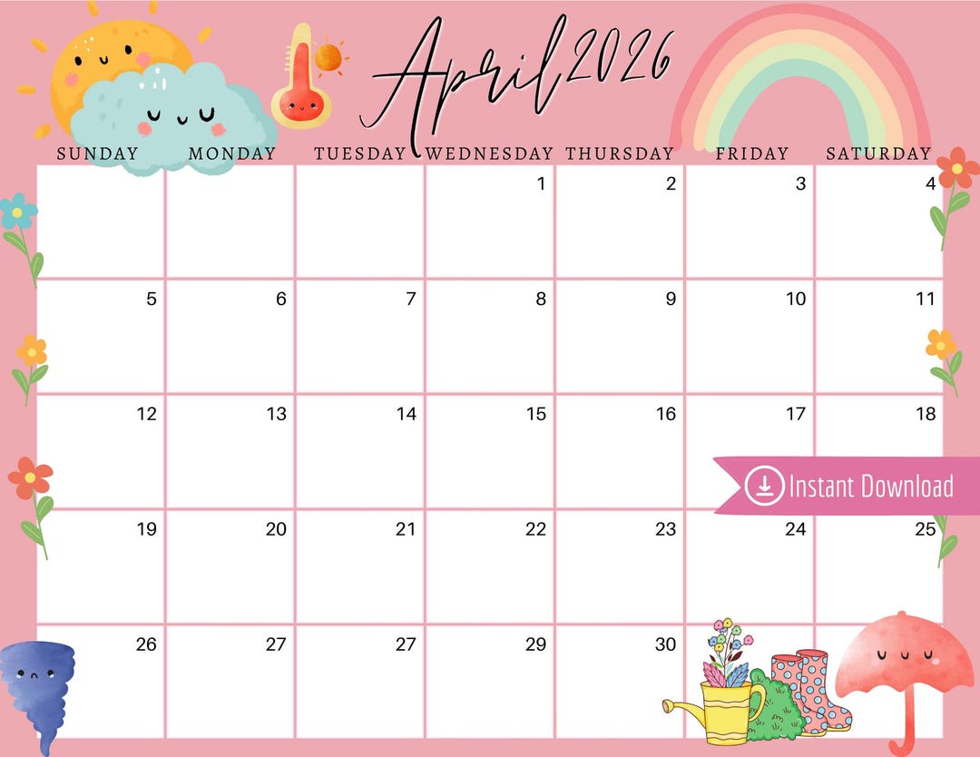 April 2026 Easter Calendar: Pink April Showers Design (digital Download ...