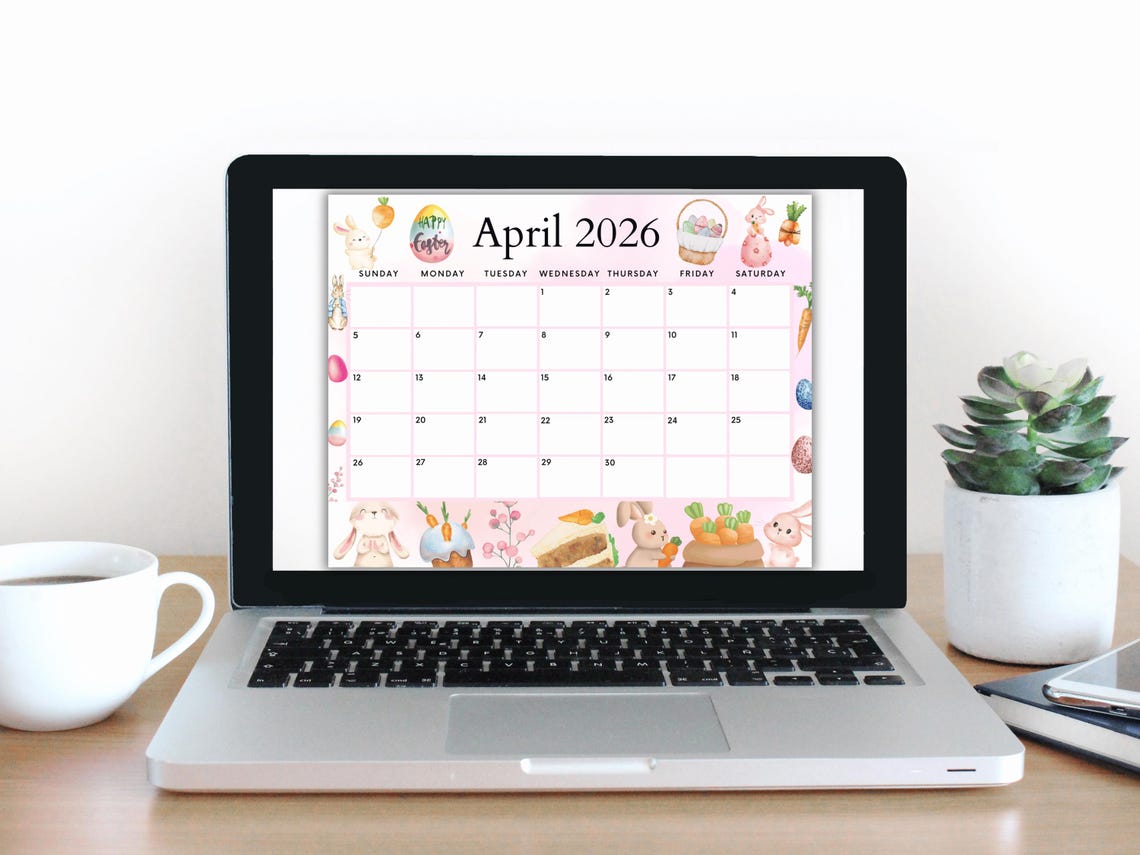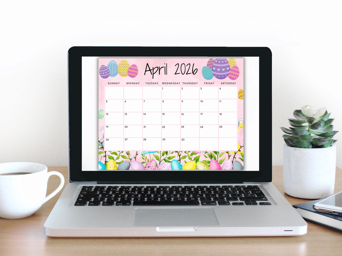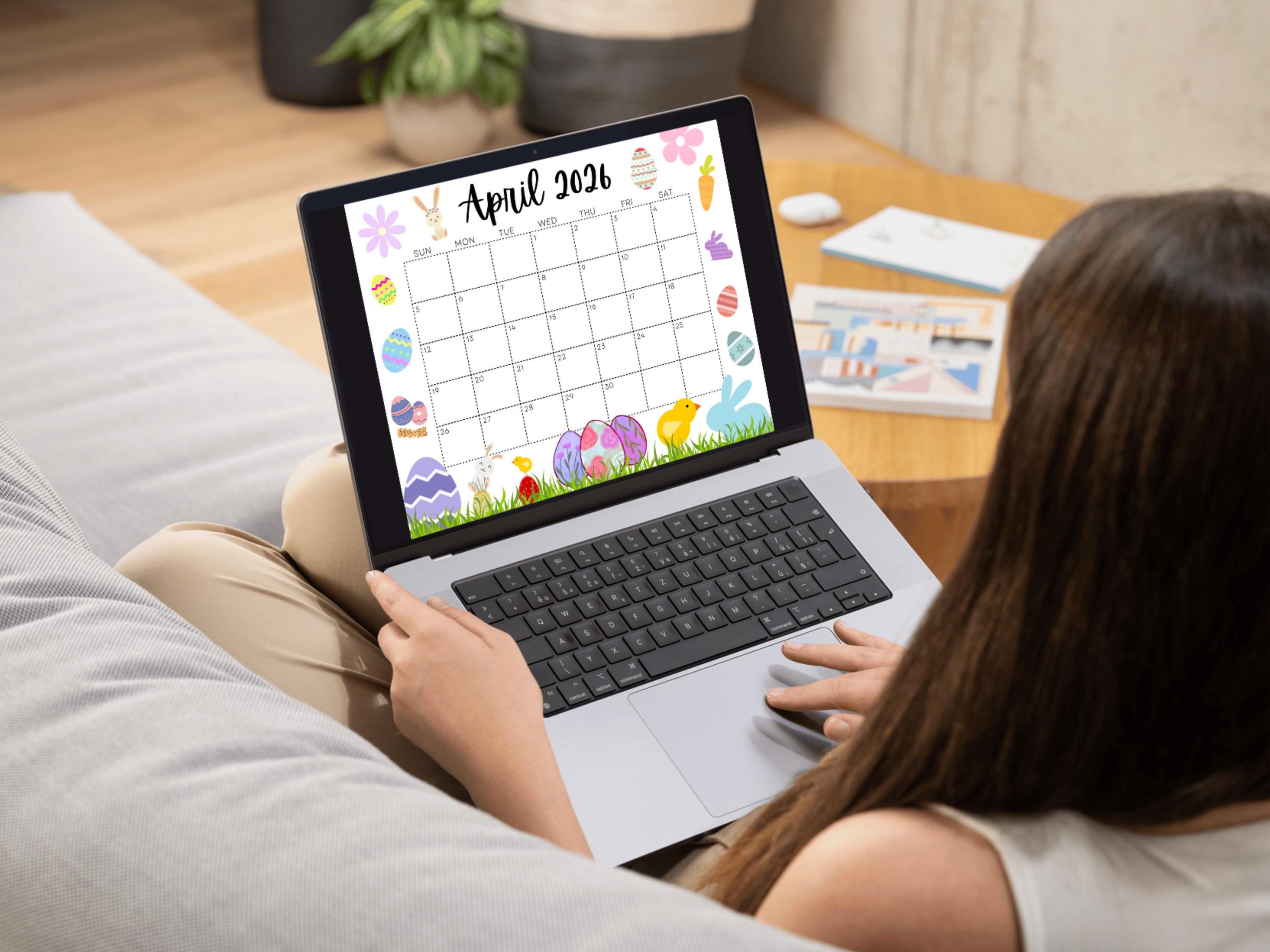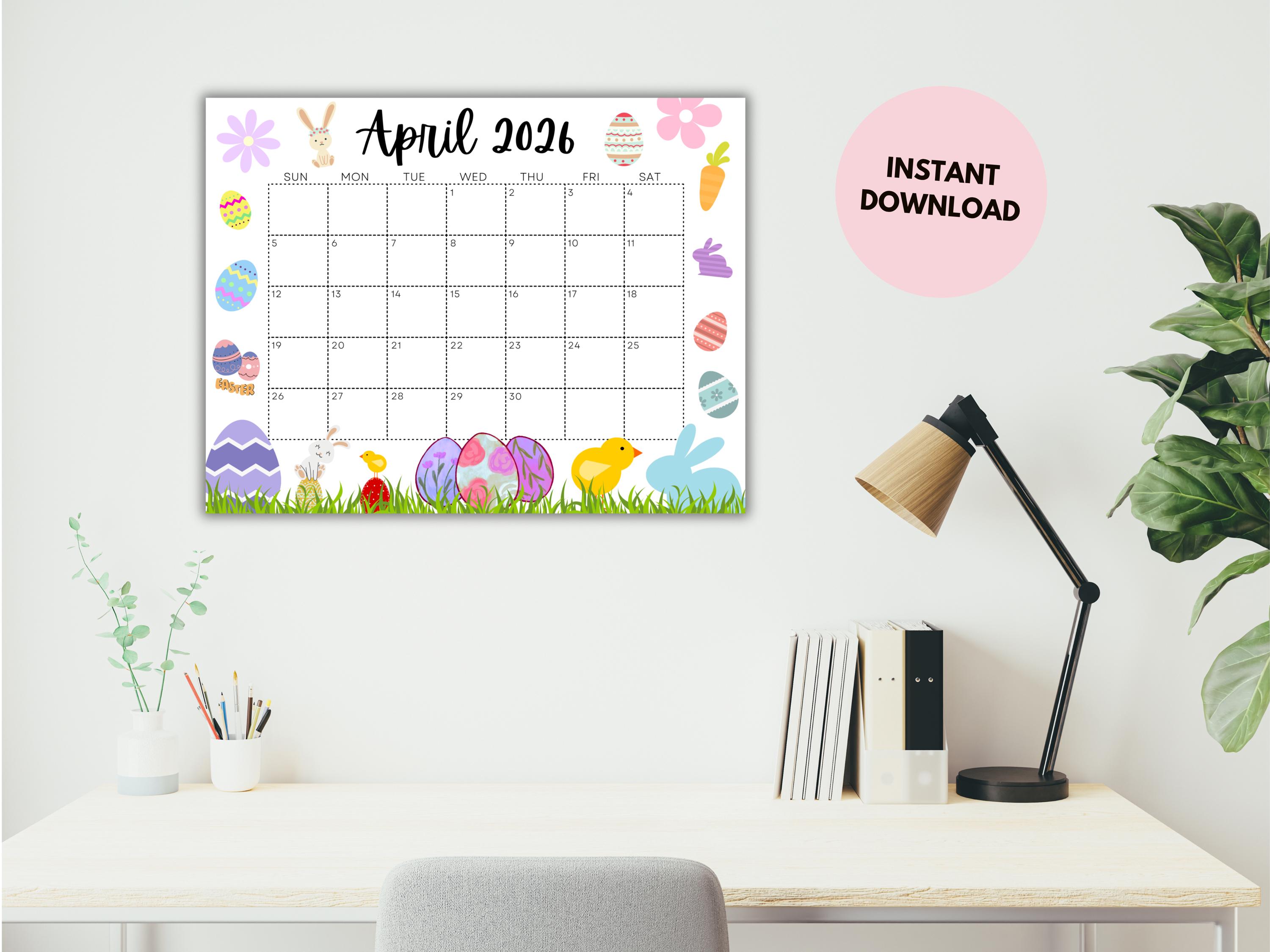April Calendar, 2026 Calendar, Easter Calendar, Spring Planner, Happy ...