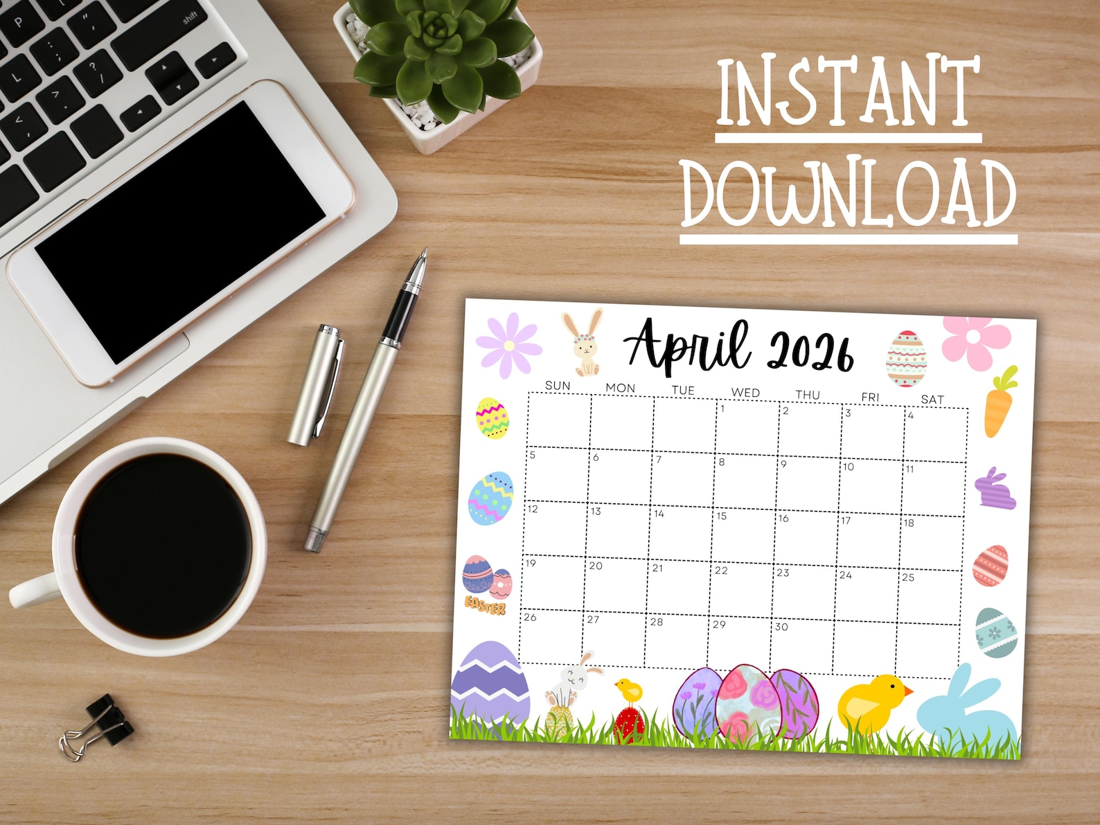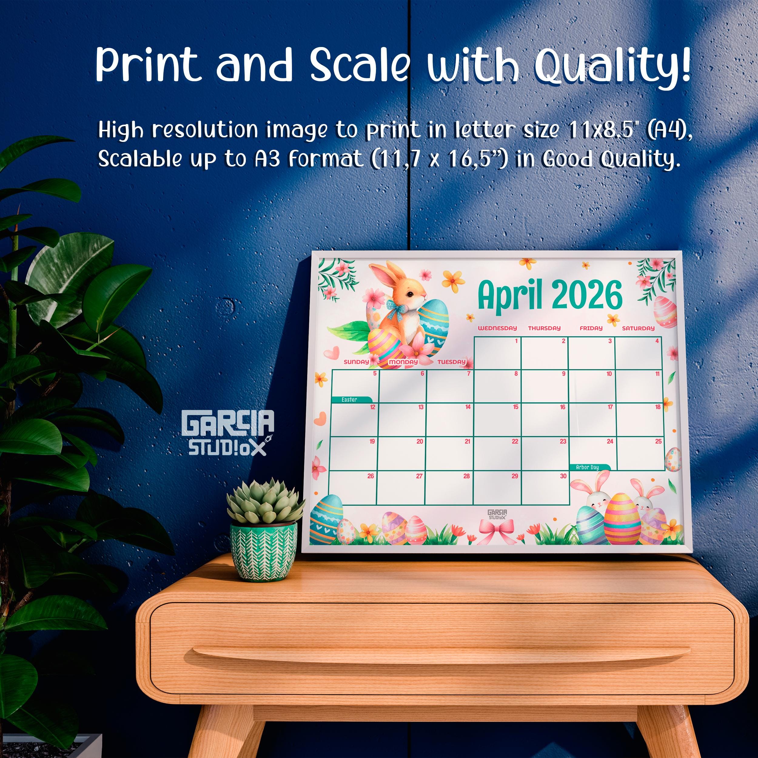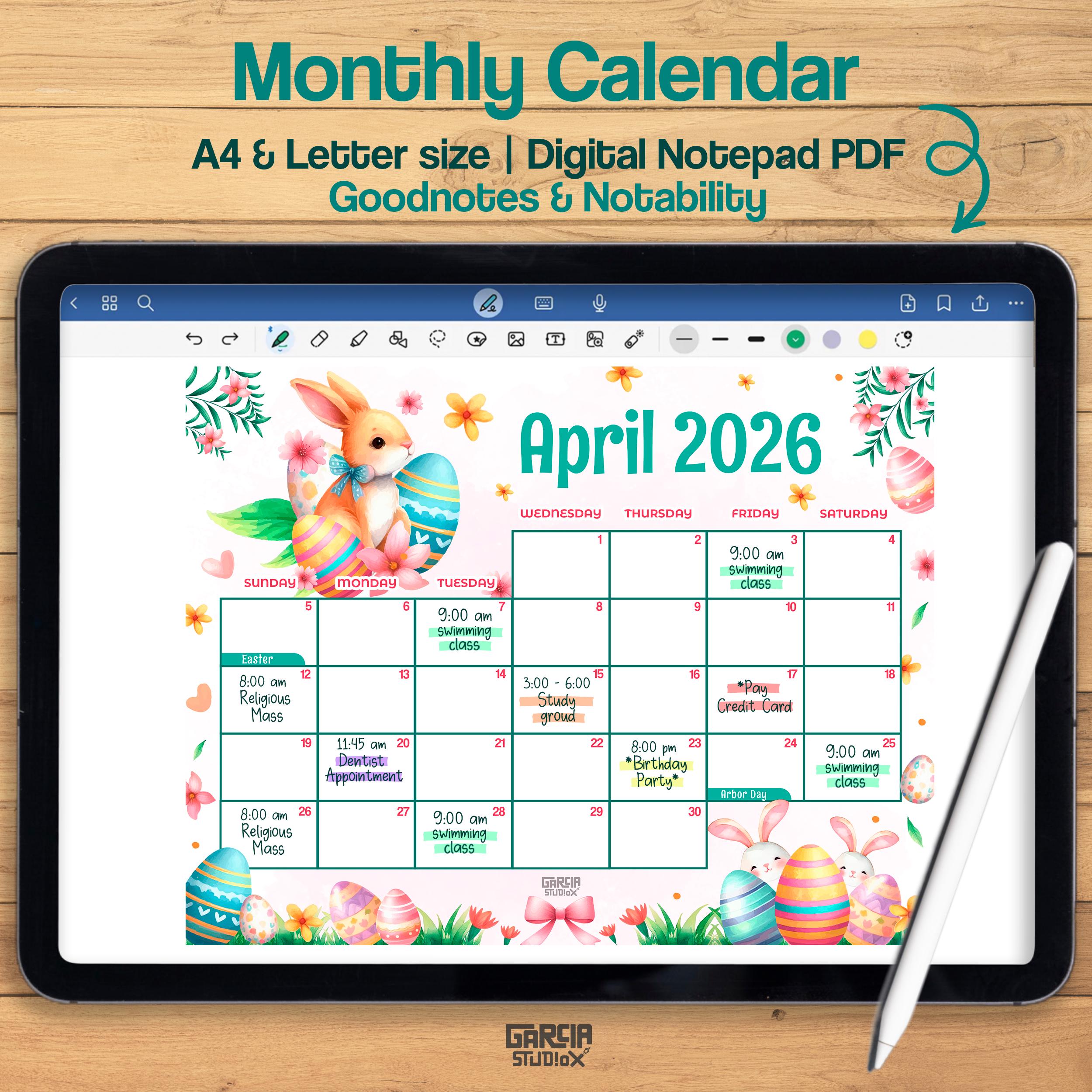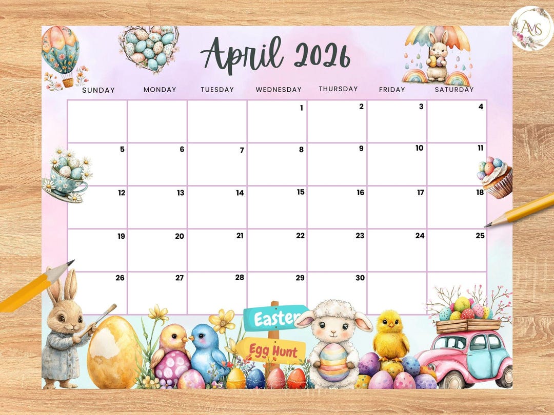 April Calendar, 2026 Calendar, Easter Calendar, Spring Planner, Happy ...