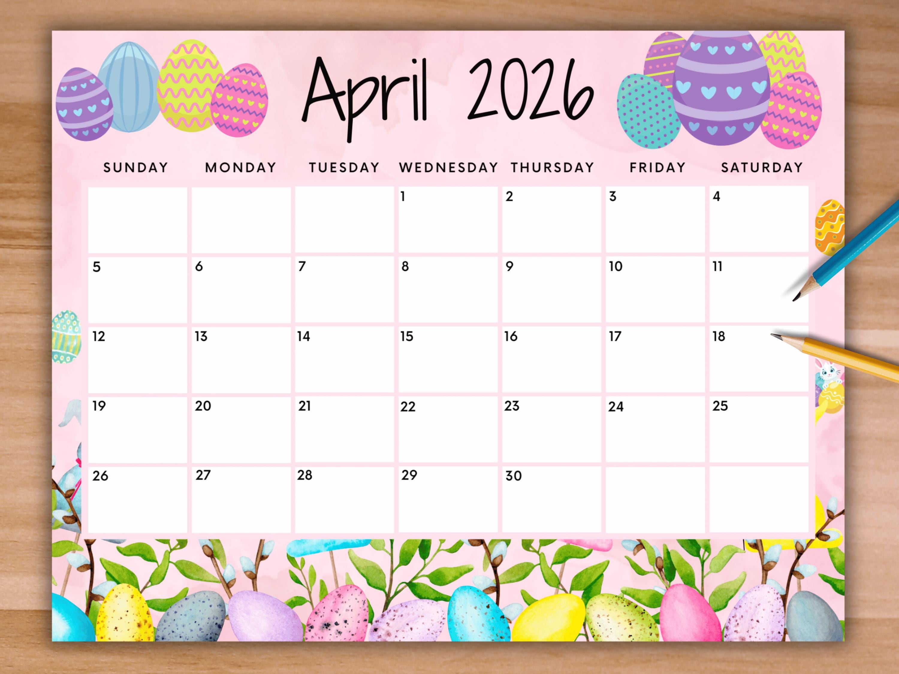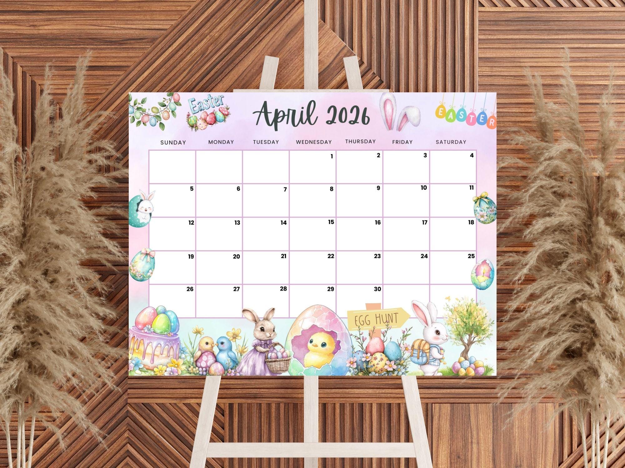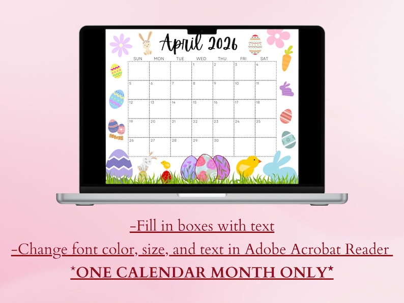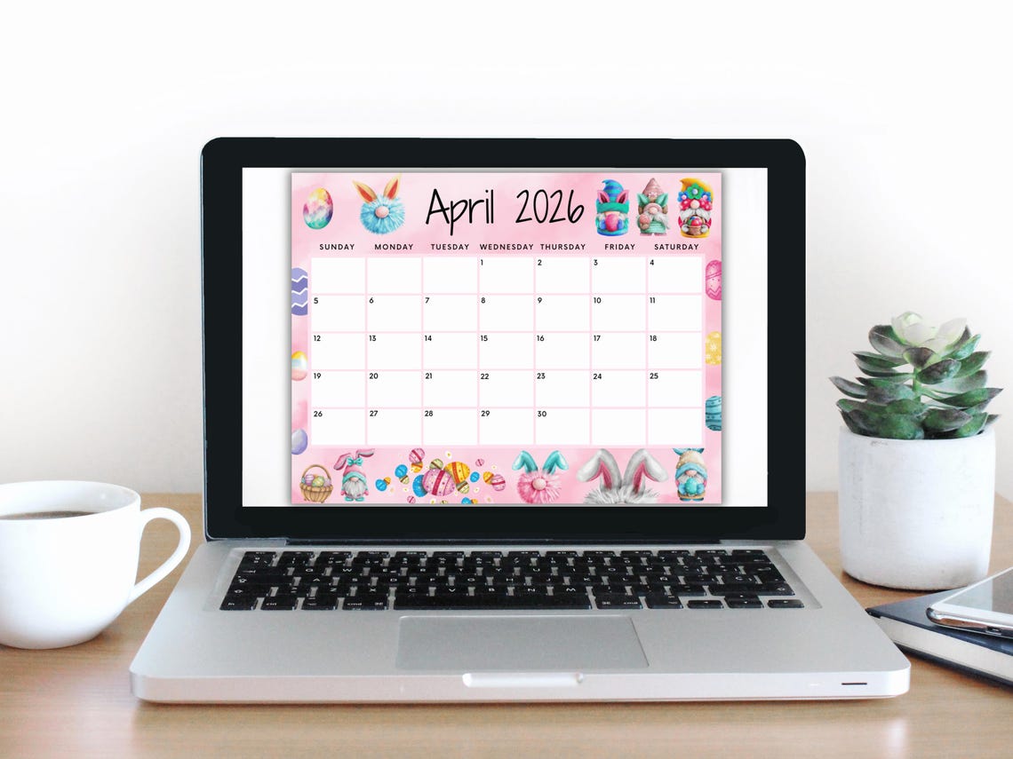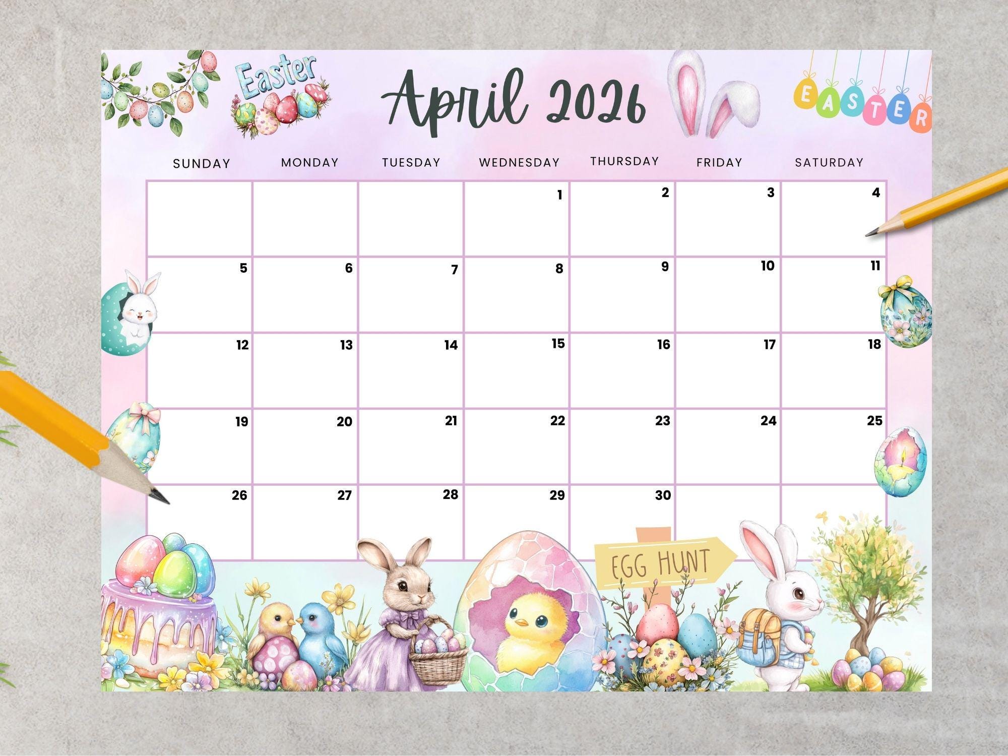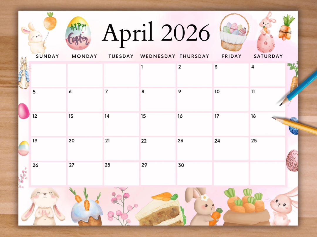 April 2026 Calendar: Light Pink Easter Printable (PDF, PNG, JPG) - Etsy