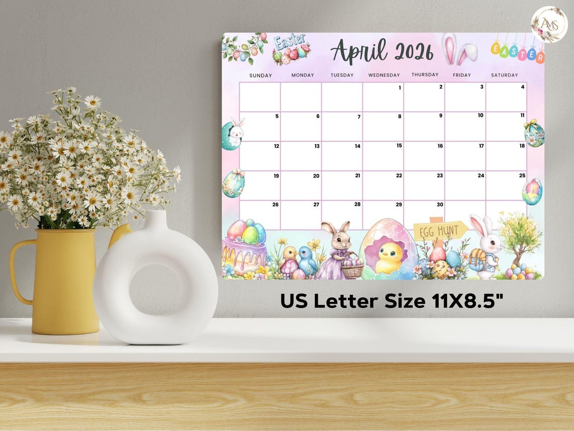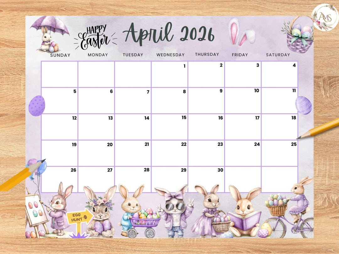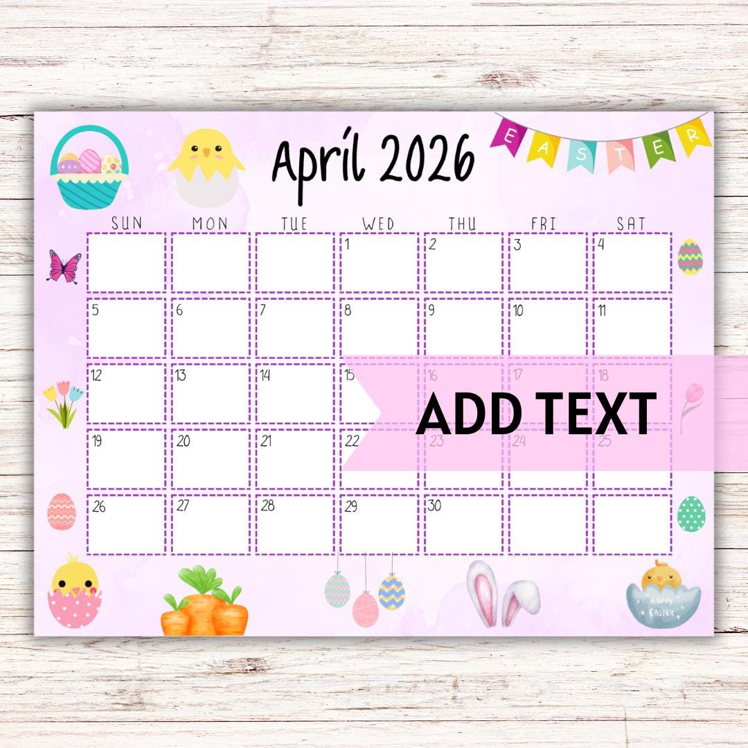 Editable April 2026 Easter Bunny Calendar, Printable Planner (PDF & JPG ...