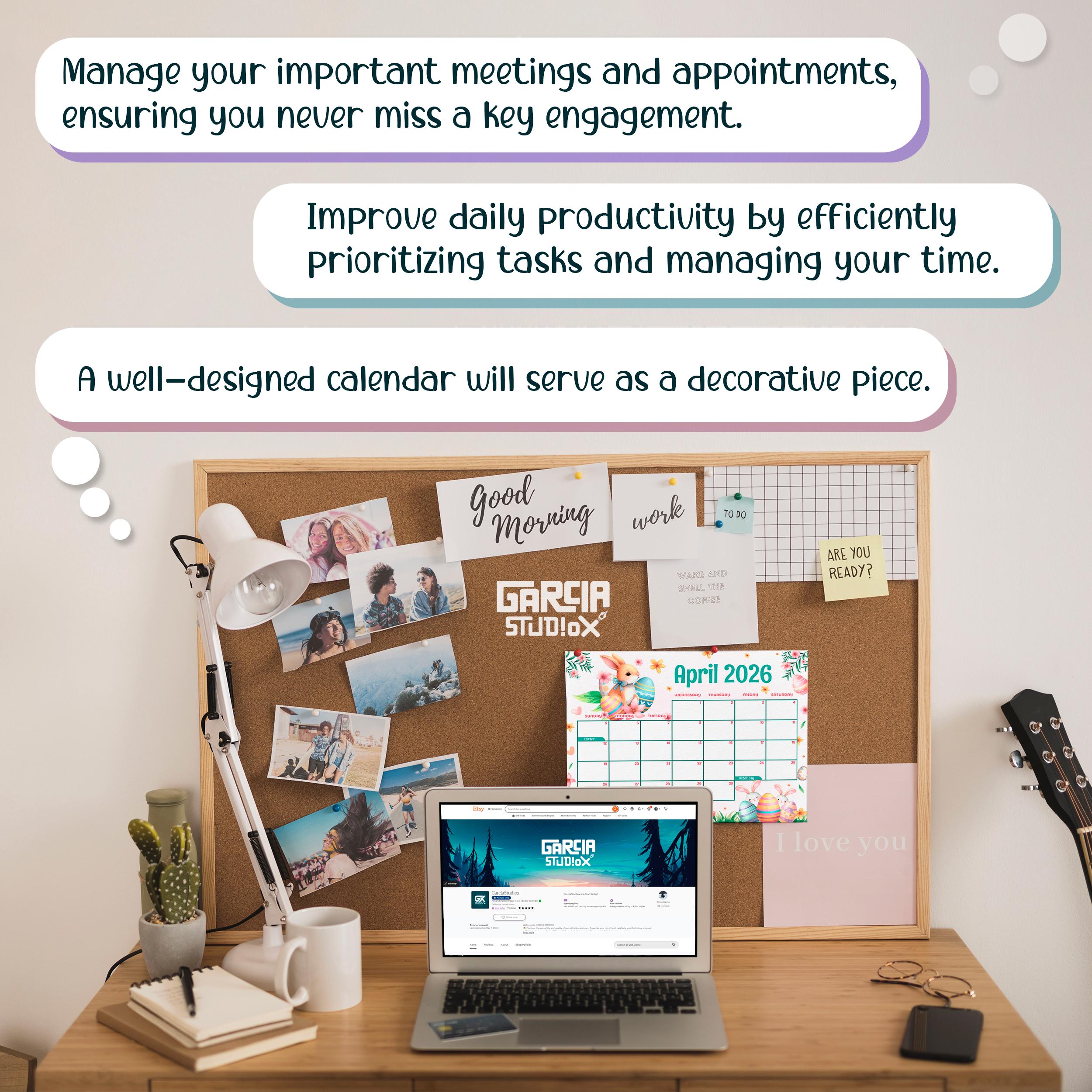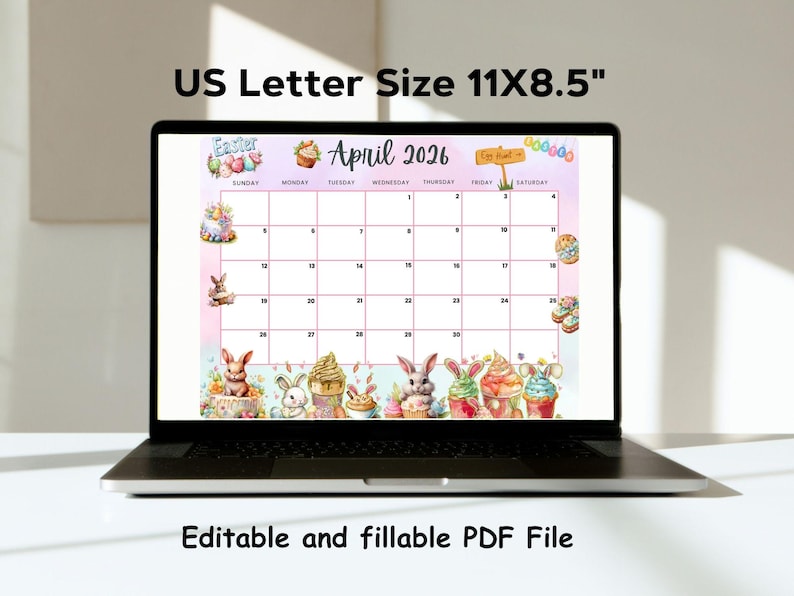 EDITABLE April 2026 Calendar, Monthly Planner, Happy Easter Day, Cute ...
