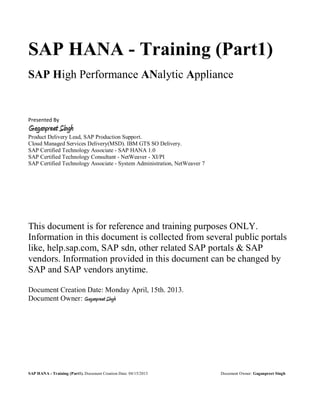 SAP HANA Training - For Technical/BASIS administrators. | PDF