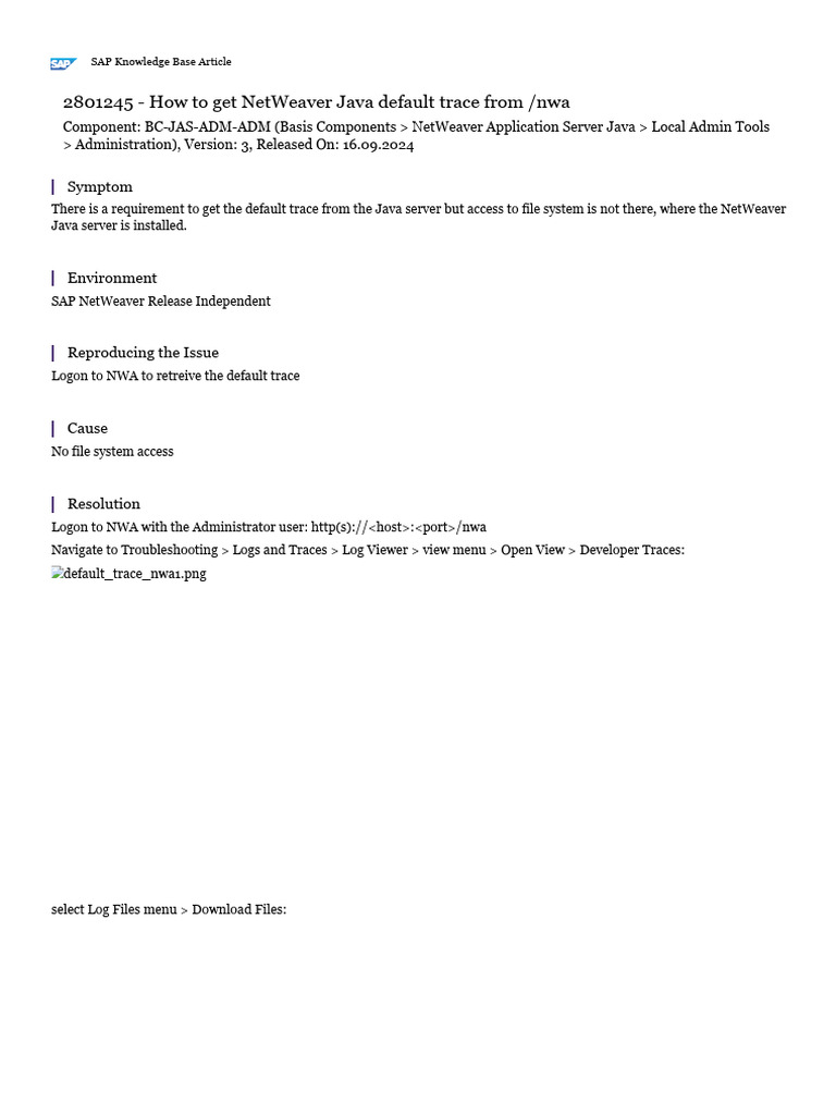 How To Get Netweaver Java Default Trace From /nwa: Symptom | PDF