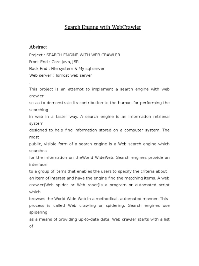 Project Report On Search Engine | PDF | Baidu | World Wide Web