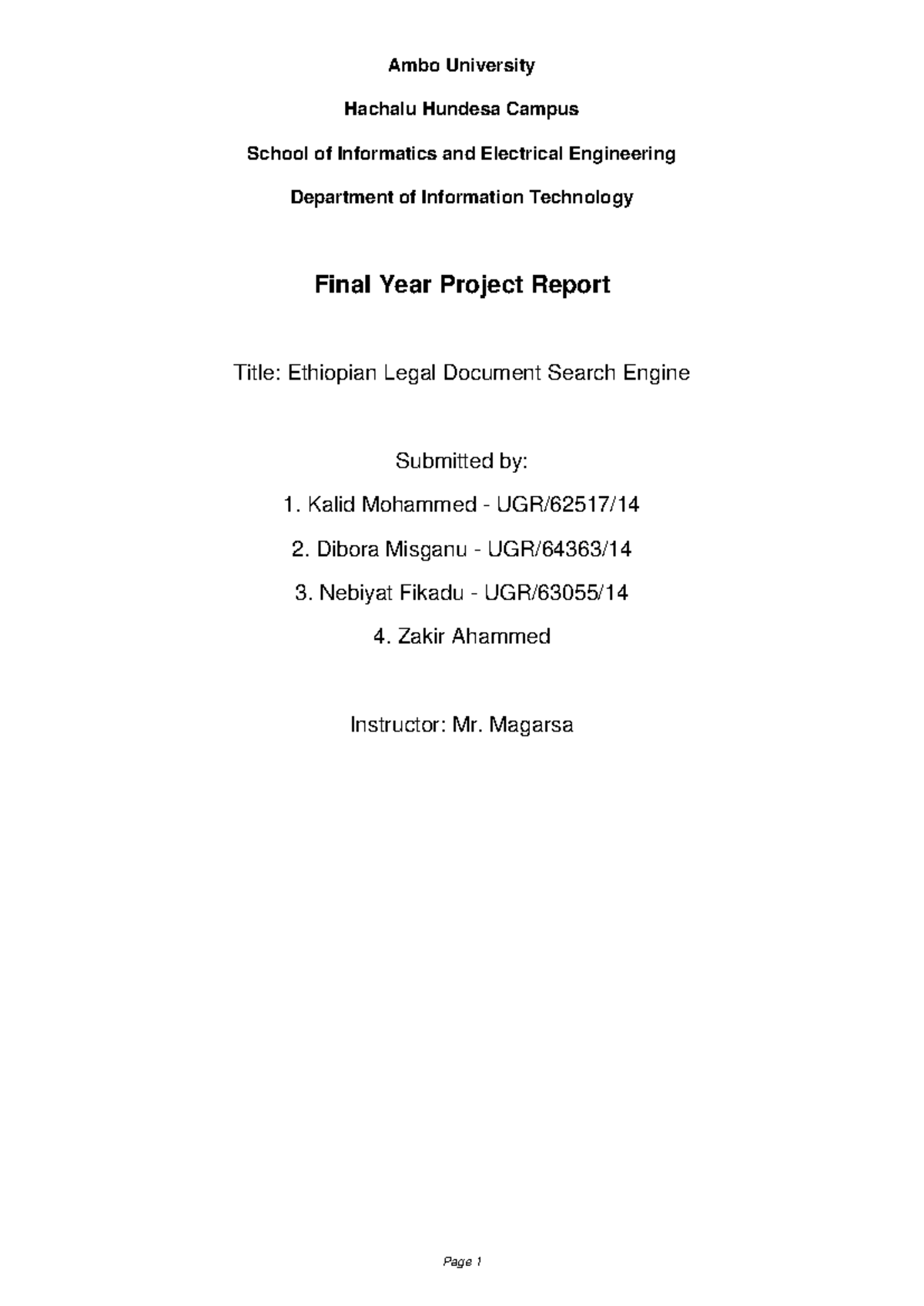 Ethiopian Legal Document Search Engine Project Report (IT 499) - Studocu