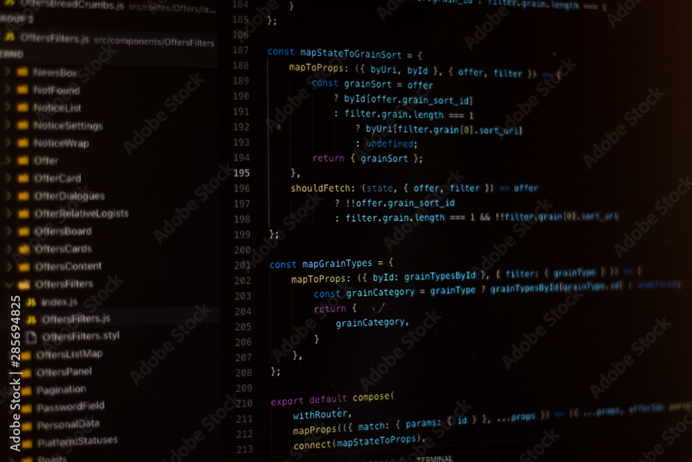 Code redactor (IDE) with open javascript project using react Stock ...