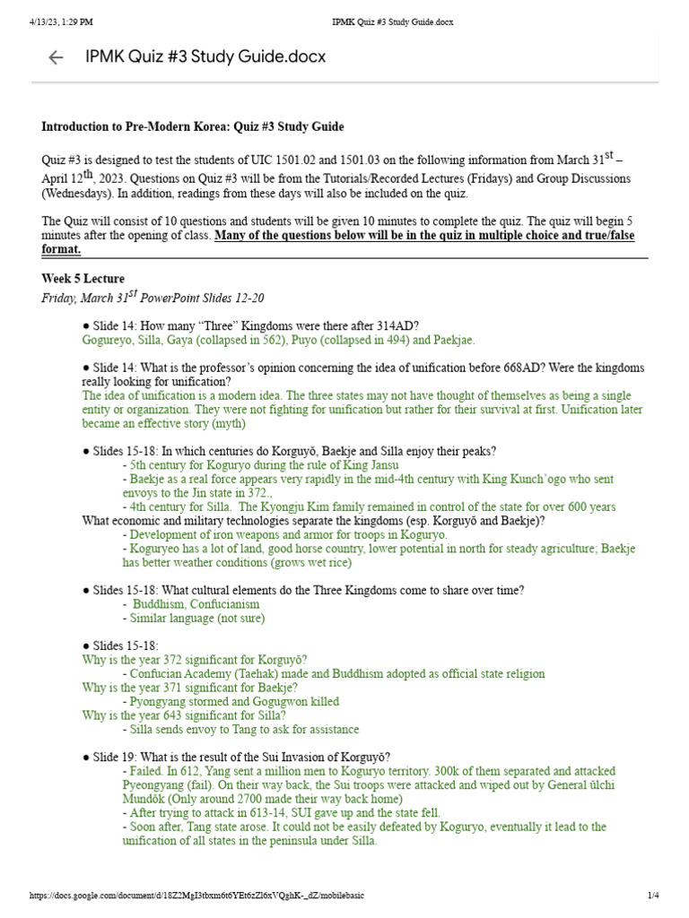 UIC1501 - Quiz03 - Study Guide | PDF | Korea | Tang Dynasty