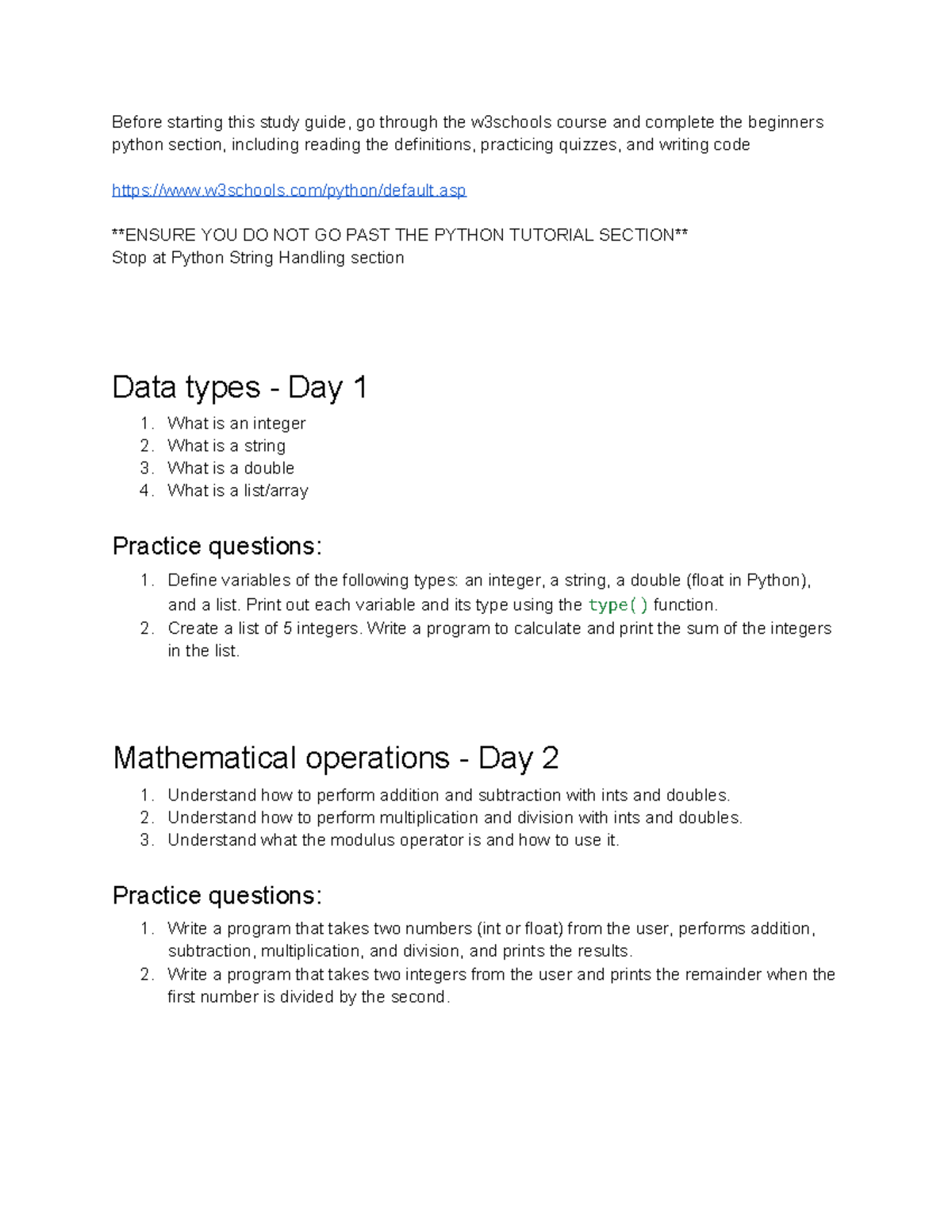 COMP SCI 10: Python Basics Study Guide for Beginners - Studocu