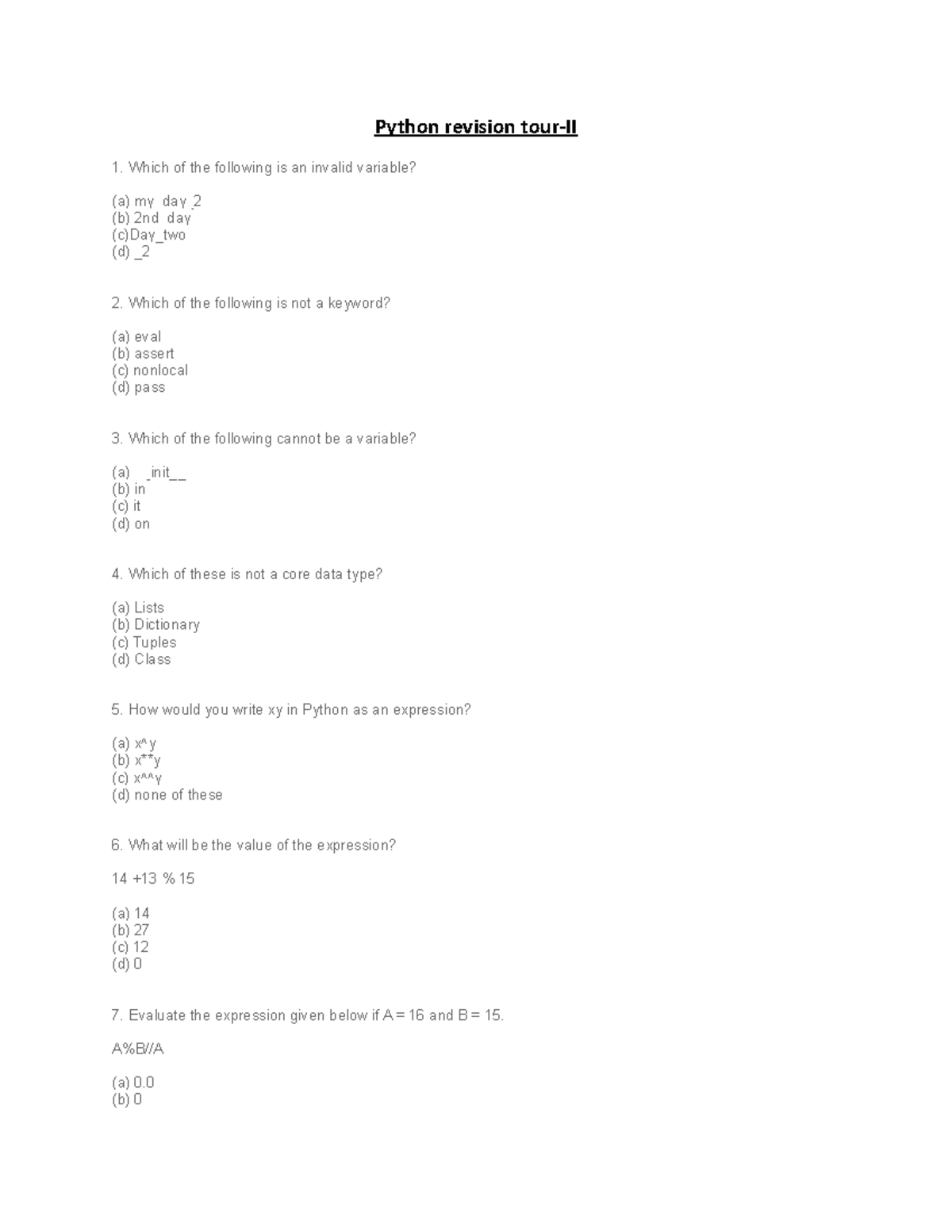Python 15CS664 Question Bank - Question Bank for the subject Python ...