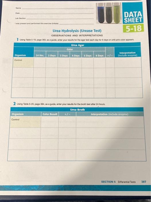 Solved Name Dale Lab Section DATA SHEET I was present and | Chegg.com