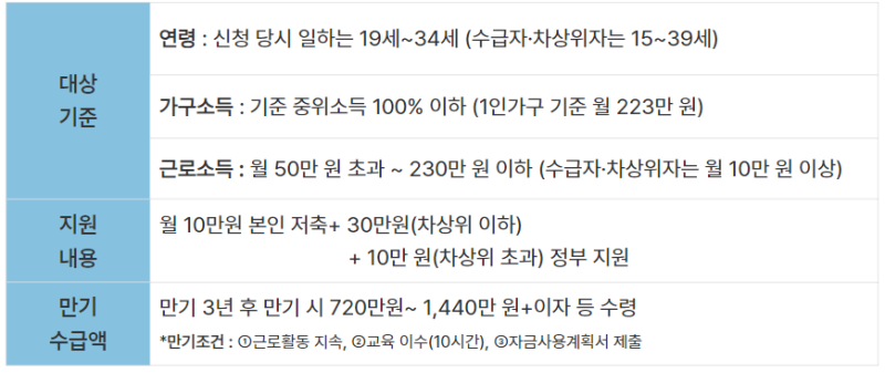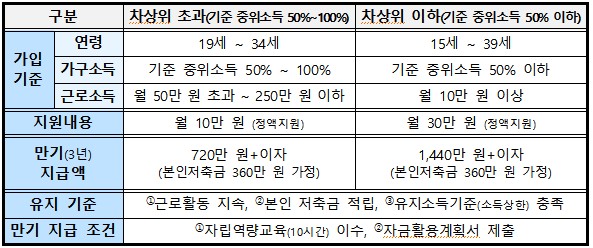 청년 내일저축계좌 신청방법, 자격조건