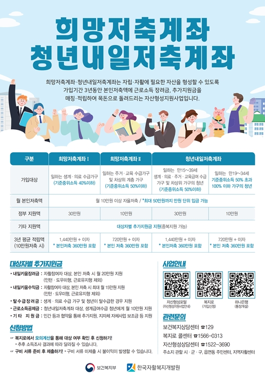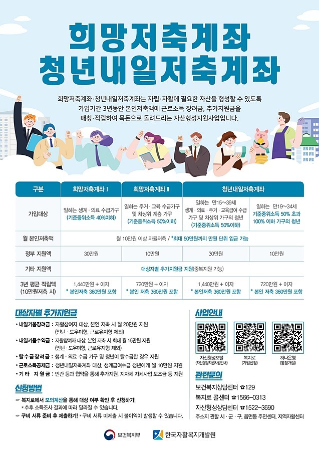 2024년 희망저축계좌Ⅰ,Ⅱ 및 청년내일저축계좌 모집 및 지원 일정 : 포천지역자활센터