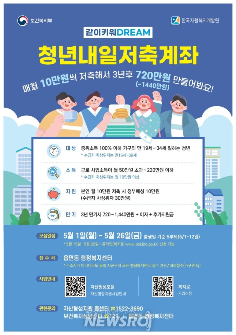 증평군, ‘청년내일저축계좌’ 가입자 모집…매월 최대 30만원 지원 | 뉴스로