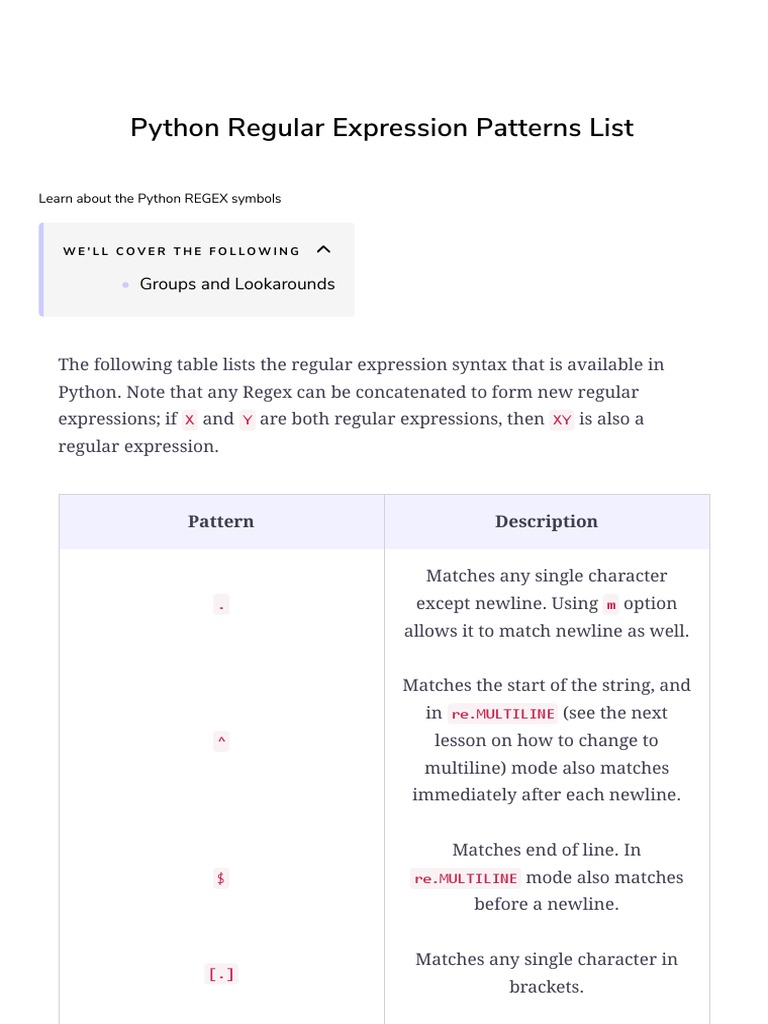 Based on this image's title: “Python Regular Expression ( With Examples ) | Python programming books ...