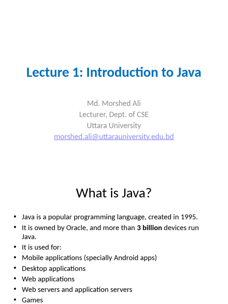 Lecture - 1 introduction to java | PPTX