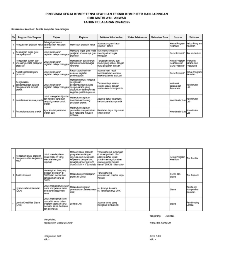 Program Kerja Tahunan TKJ | PDF | Karier & Perkembangan | Bisnis