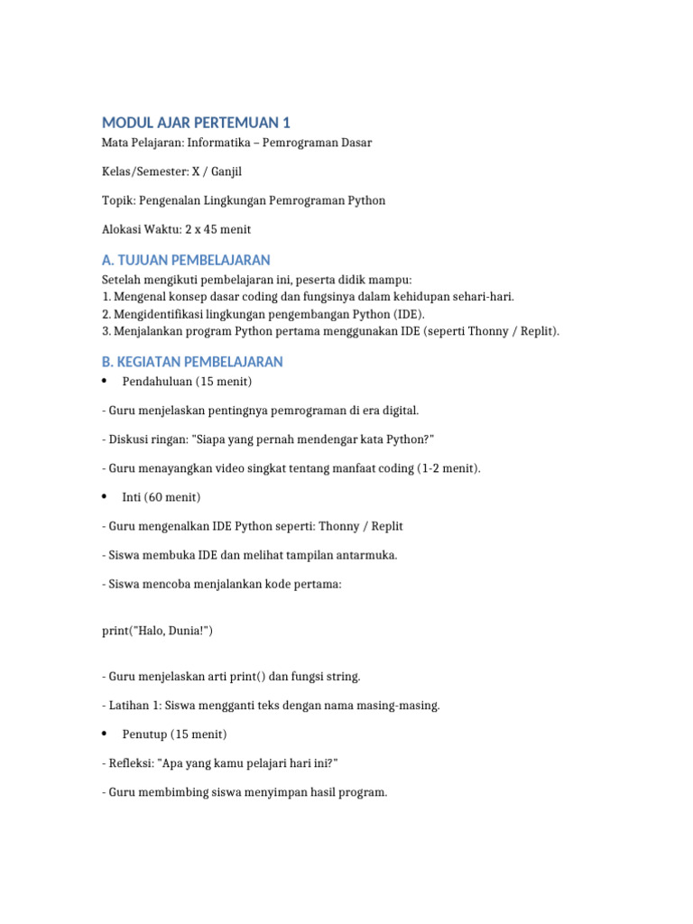 Modul Ajar Pertemuan 1 Python SMK | PDF