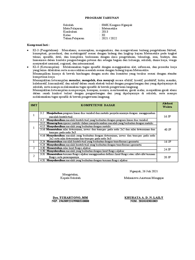 Program Tahunan Kelas XI-TKJ 2 SMK Kosgoro | PDF