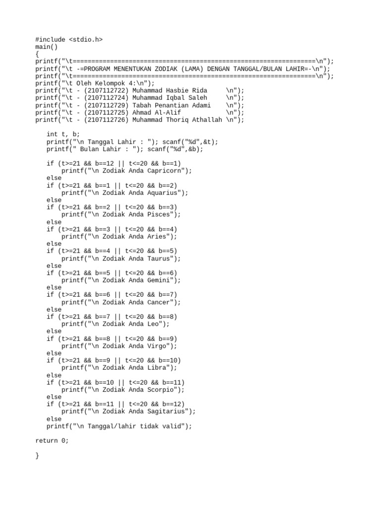 Kode Program Mengetahui Zodiak Input Tanggal, Bulan, dan Tahun ...