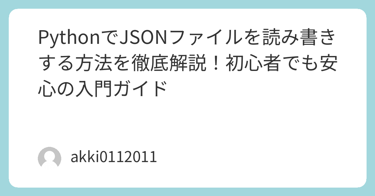 PythonでJSONファイルを読み書きする方法を徹底解説!初心者でも安心の入門ガイド - AkiEngineer
