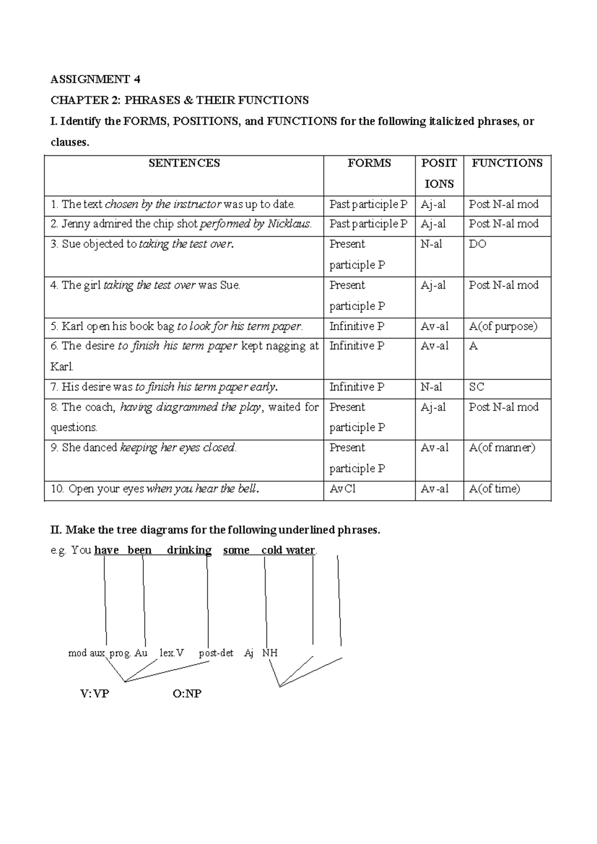 SYNTAX REVIEW 2: PHRASES & FUNCTIONS - ASSIGNMENT 4 - Studocu