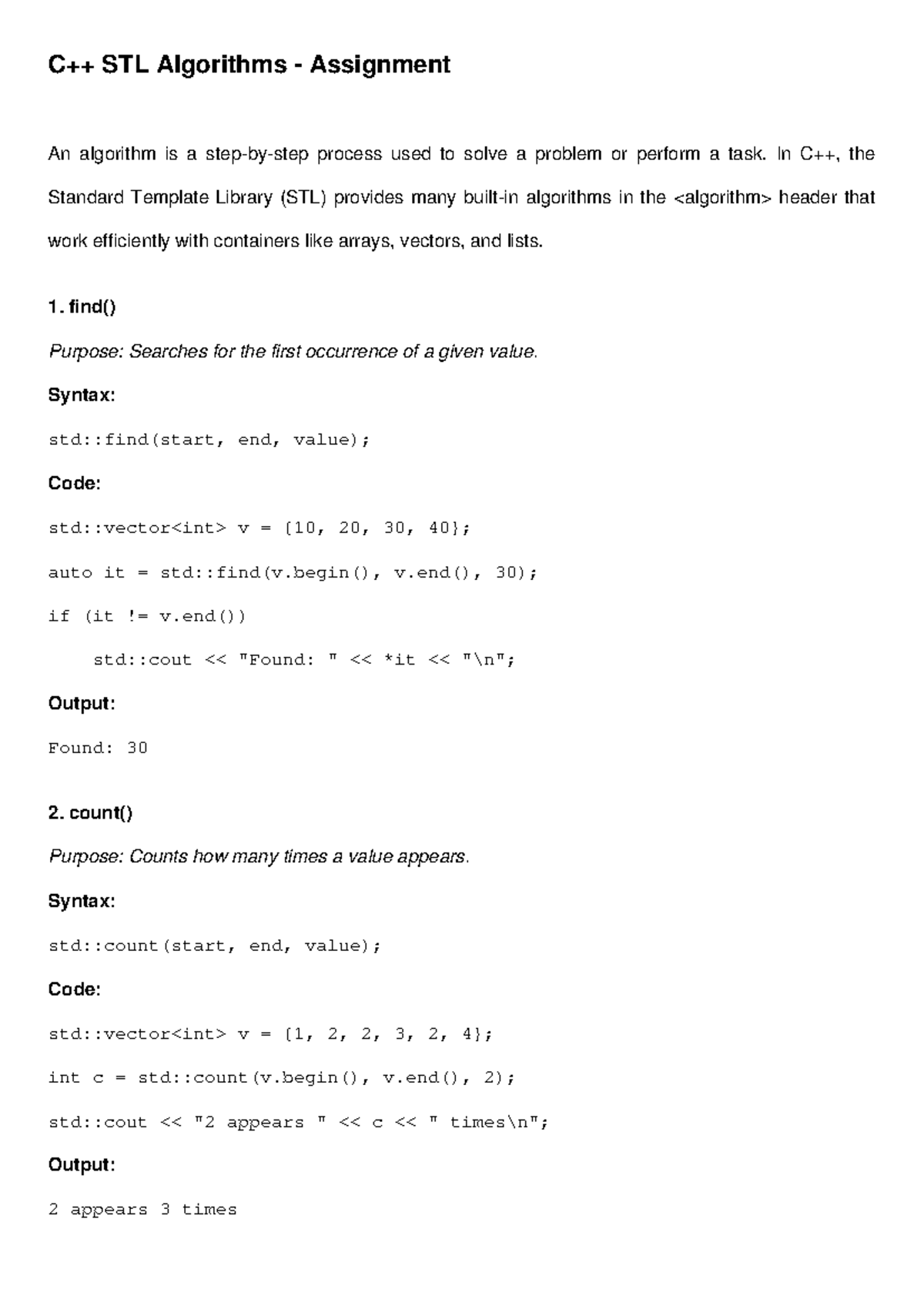 STL Algorithms Assignment: Key Functions & Syntax Overview - Studocu