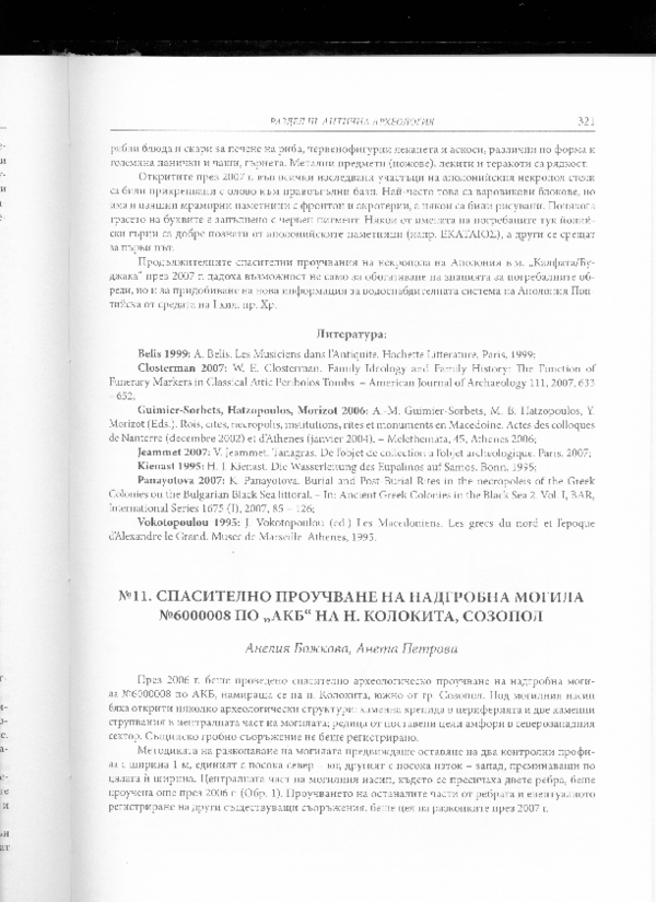 (PDF) Спасително проучване на антична цистерна в района на Аполония