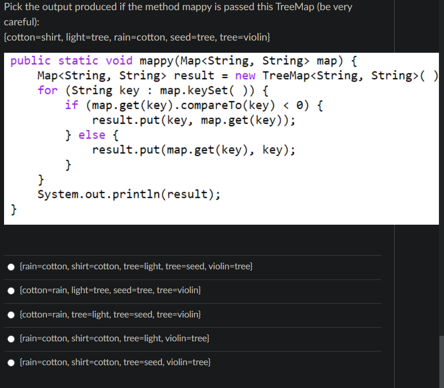 Solved Pick the output produced if the method mappy is | Chegg.com