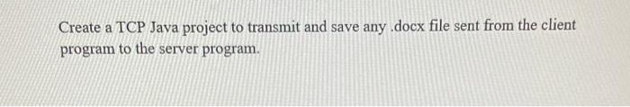 Solved Create a TCP Java project to transmit and save any | Chegg.com